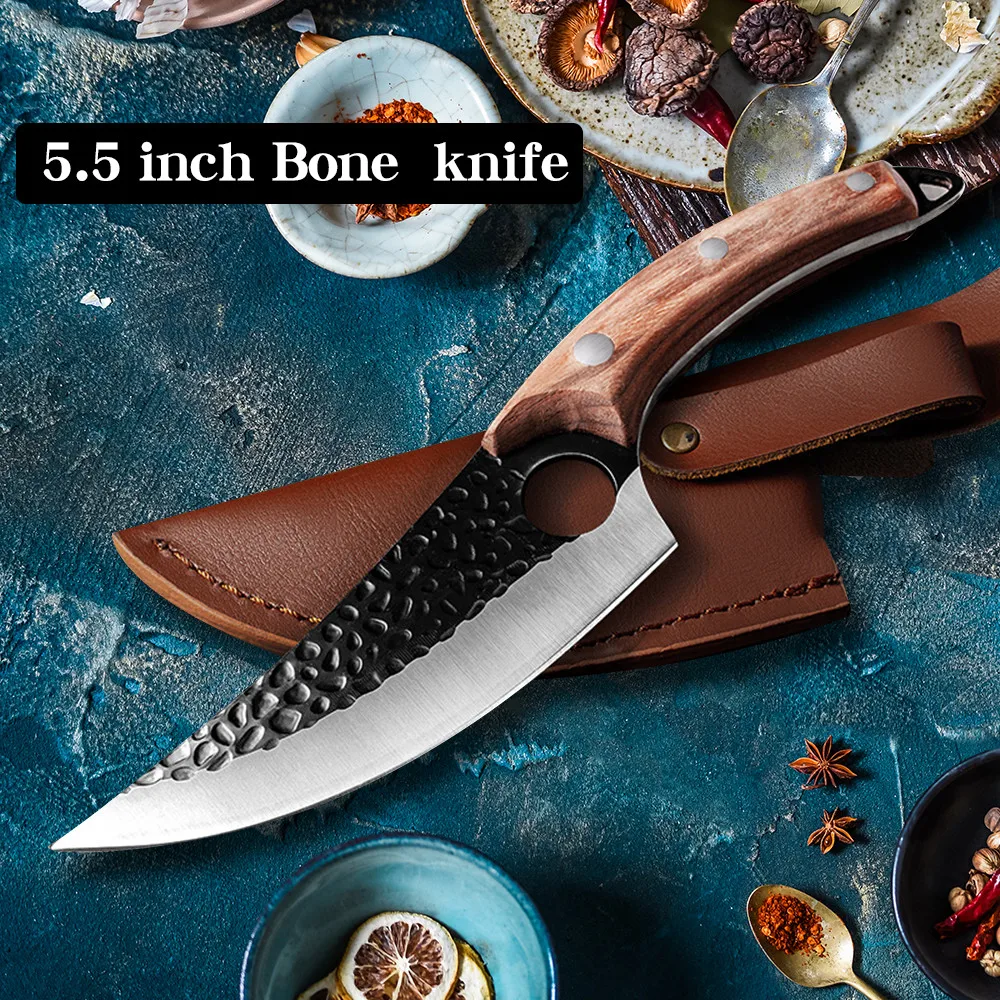 Обвалочный нож, рыболовный нож ручной работы, из нержавеющей стали, кухонный нож для мяса, резак для приготовления пищи на открытом воздухе, чехол для ножа мясника инструмент в ножнах