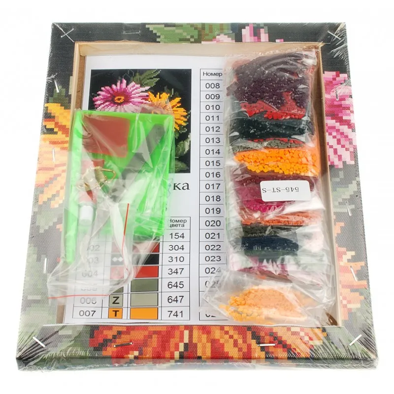 Используя прилагающийся металлический пинцет и комплект квадратных акриловых камней, вы отлично справитесь с заполнением каждого участка картины форматом 20*25 см. Основой работы является холст, на котором напечатана цветная схема с контрастными условными обозначениями. Поверх нанесено клеевое покрытие и защищающая прозрачная плёнка.