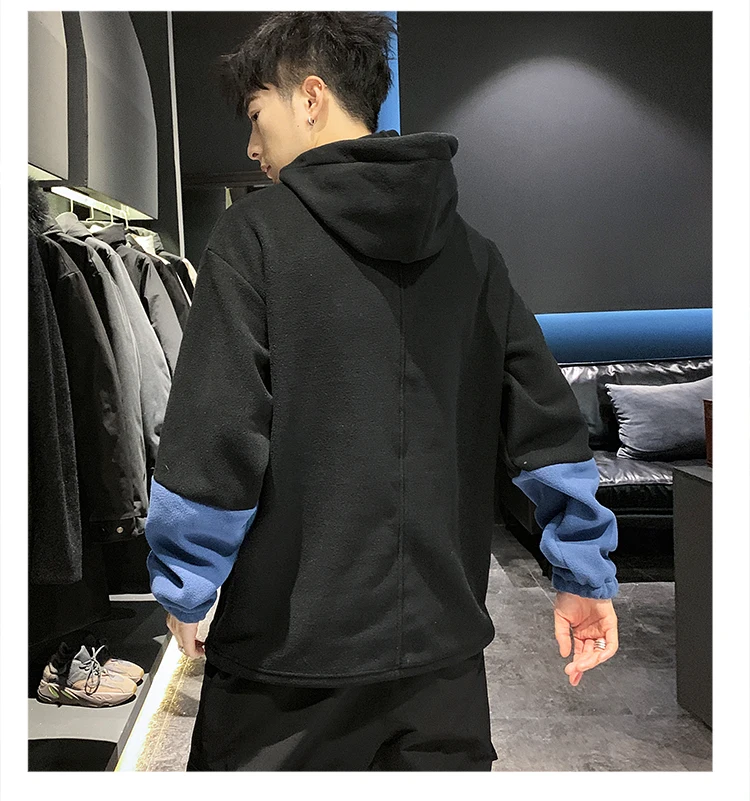 Осенне-зимние мужские толстовки с капюшоном, с длинным рукавом, уличные повседневные флисовые пуловеры, Лоскутные Топы, повседневные M-5XL