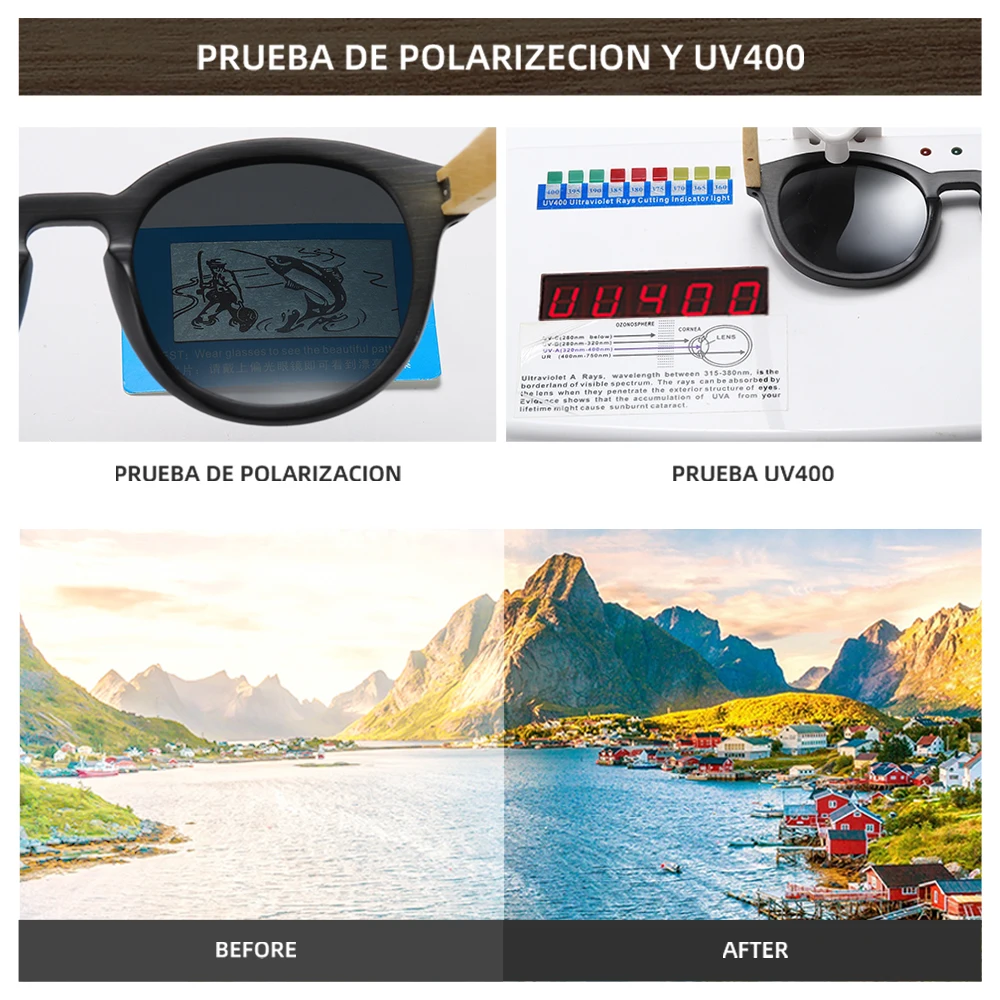 Солнцезащитные очки с бамбуковыми дужками, поляризационные, UV400