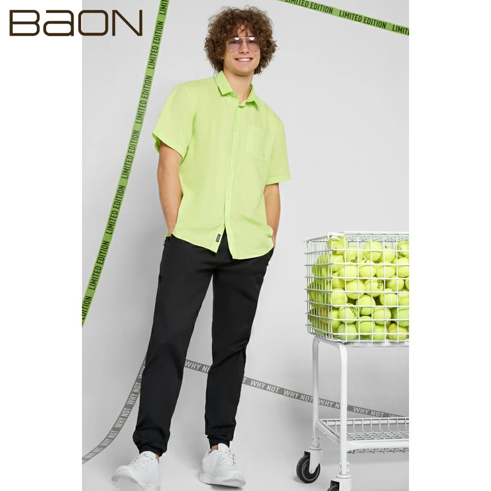 Льняная мужская рубашка с коротким рукавом Baon B680007