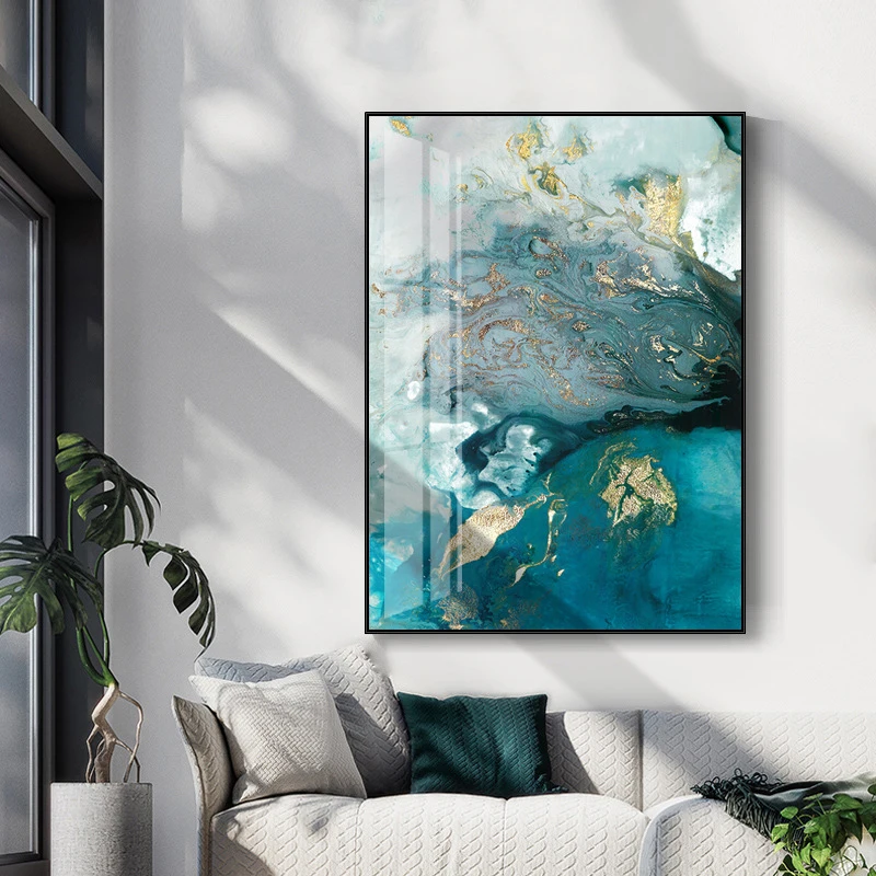 Большой абстрактный постер с красочным океаном, холст, настенные ка...