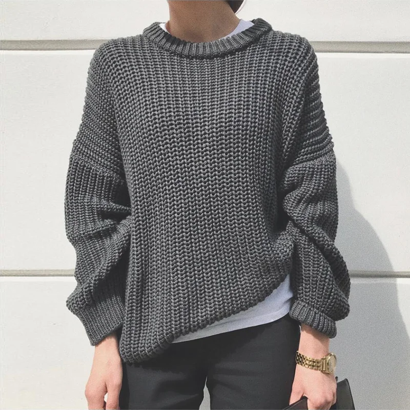 Вязаный модный теплый свитер свободного покроя с длинным рукавом дл...