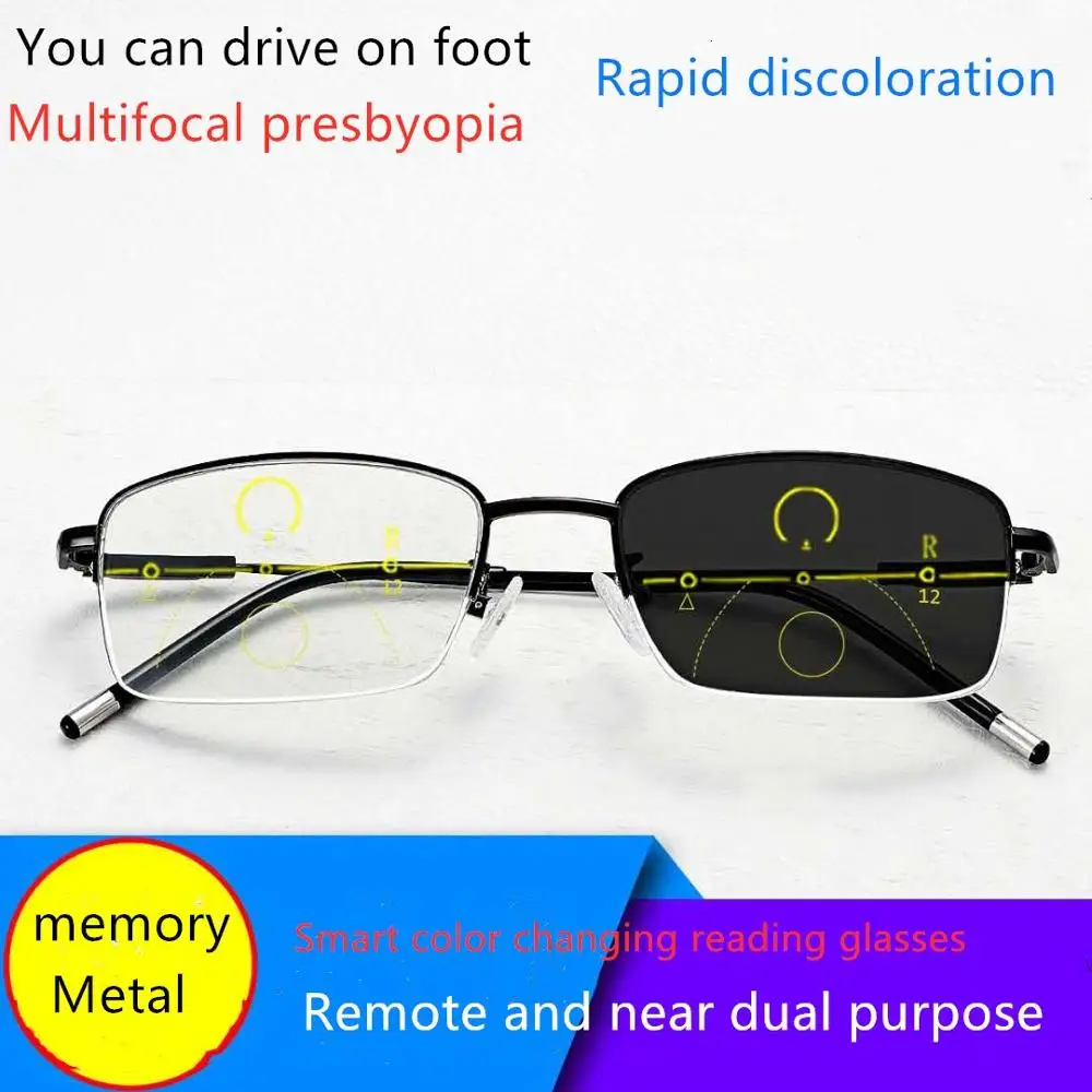 Очки для чтения с фотохромными линзами в титановой оправе, прогресс...