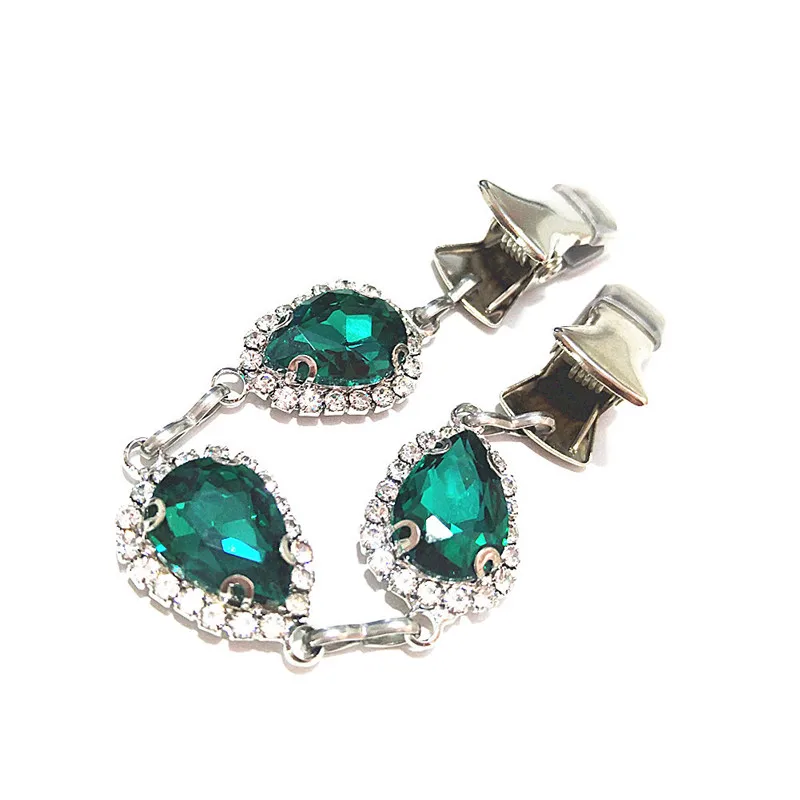 Павлин зеленый кристалл свитер закрытие клип шаль плащ Застежка женщин ювелирные изделия кардиган, украшенный стразами брошь с цепочкой Cinch защитные зажимы