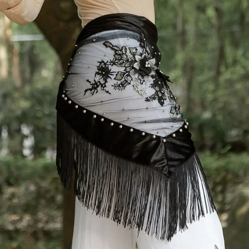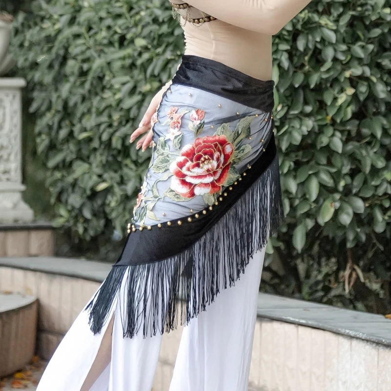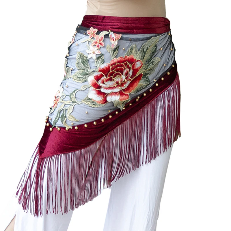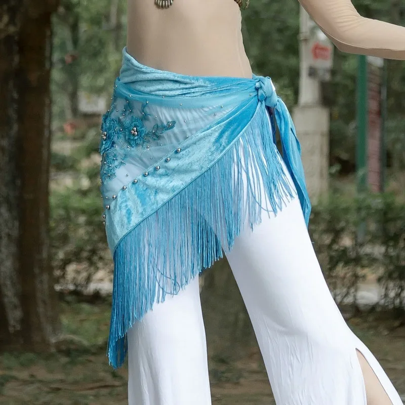 Танец живота Вышивка бархатная ткань бахрома практика хип шарф для женщин восточные Индийские танцы пояс