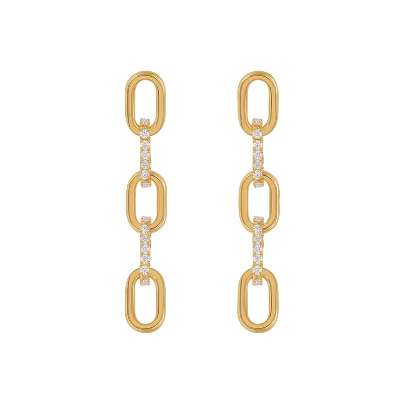 Простые темпераментные циркониевые золотые длинные висячие серьги с...