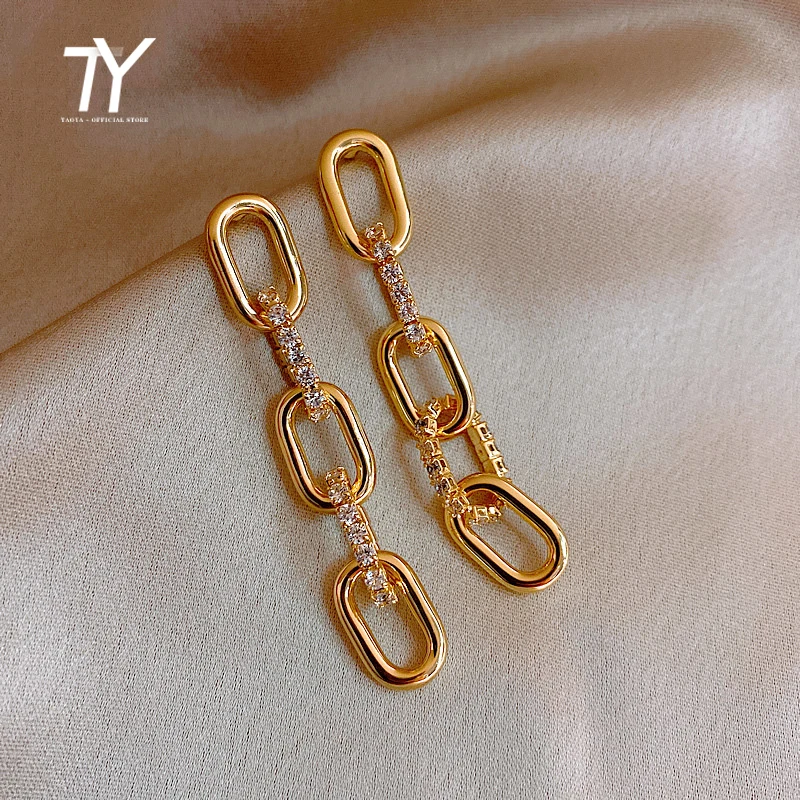 Новинка 2020, классические металлические циркониевые длинные серьги-Цепочки, корейские сексуальные женские ювелирные изделия, Необычные Роскошные серьги-подвески для вечеринок