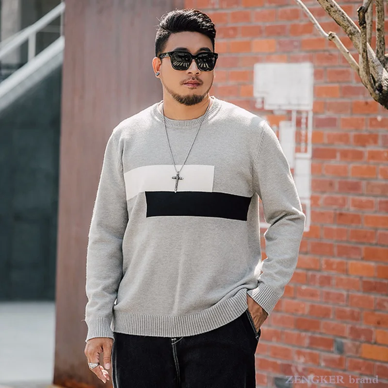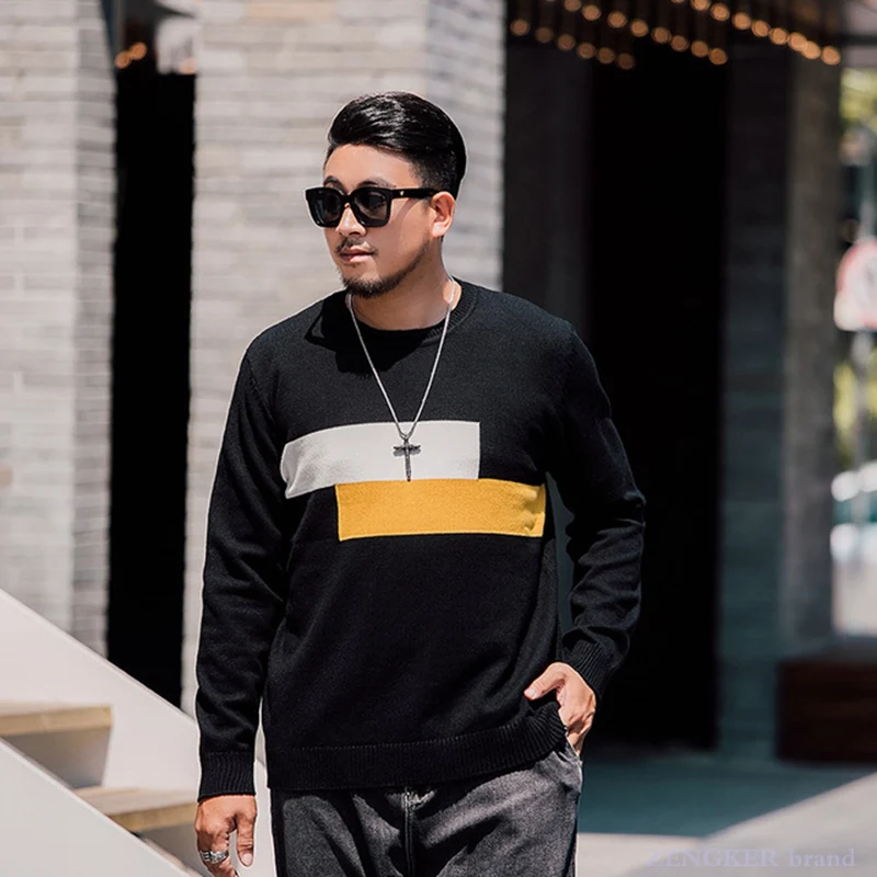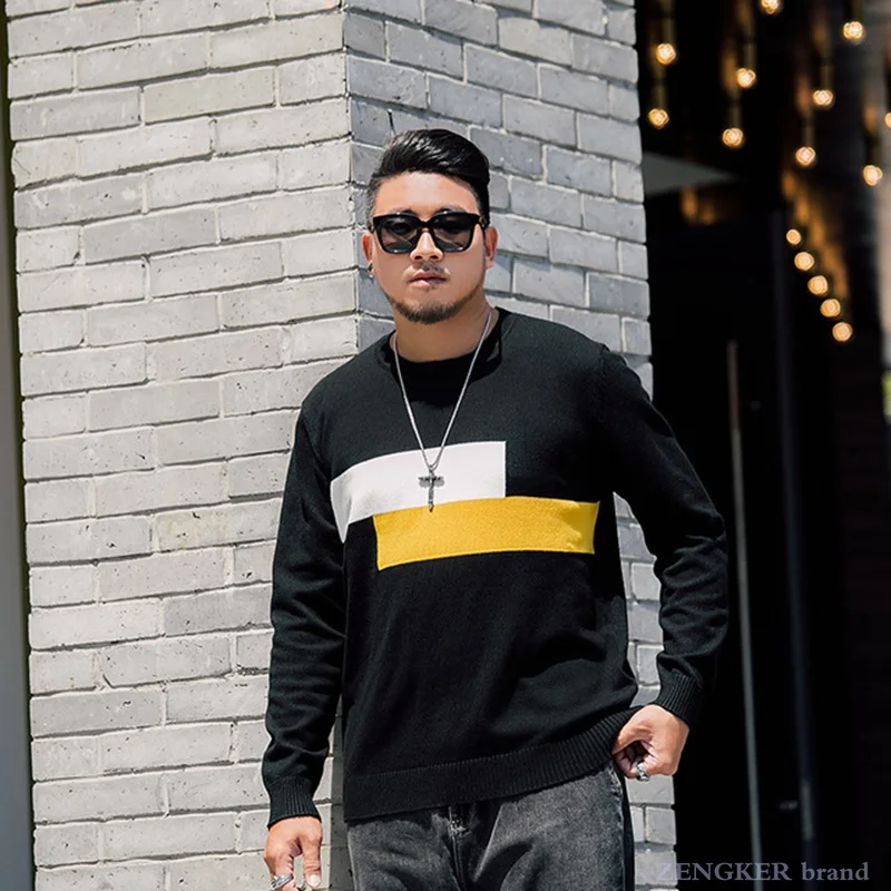 Осень 7xl толстый мужской свитер сшитый индивидуальный пуловер вязание 130 кг толстый парень свободный плюс жир размера плюс