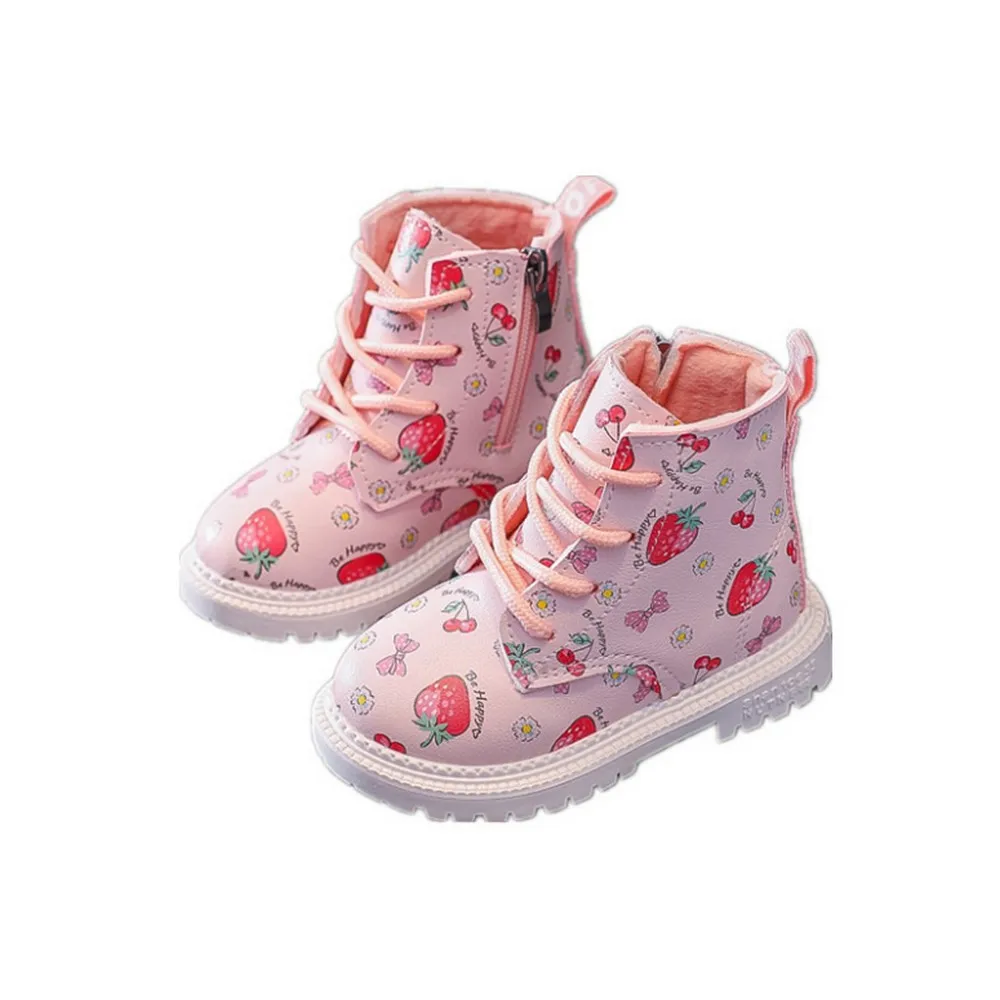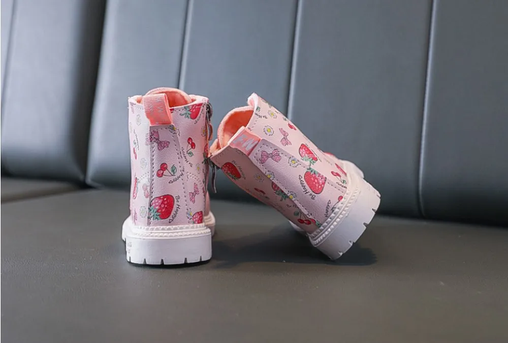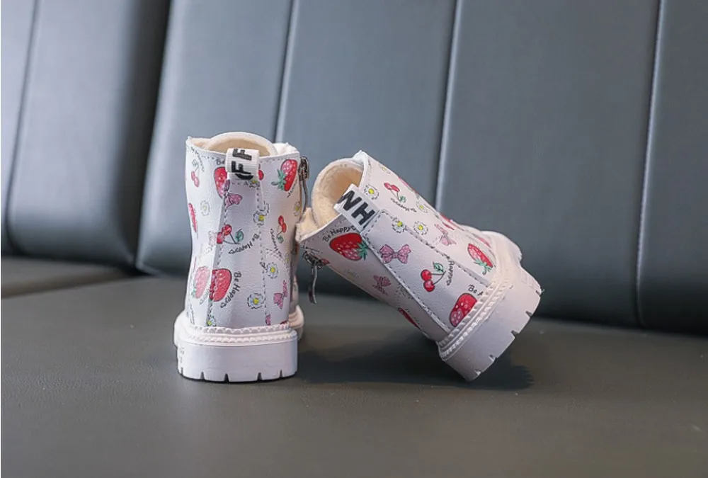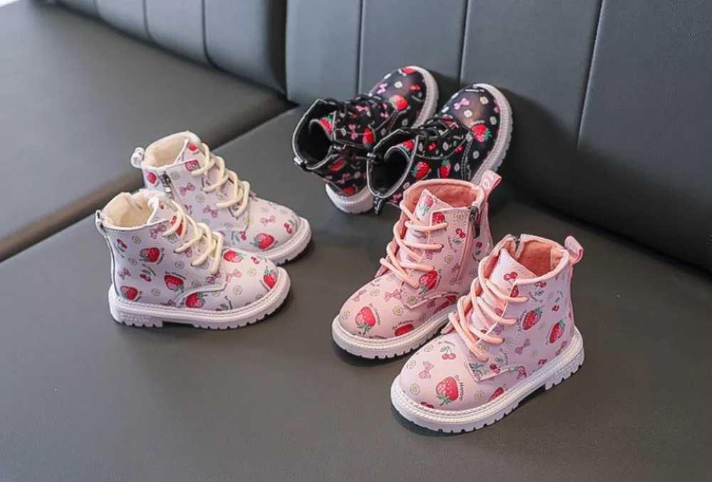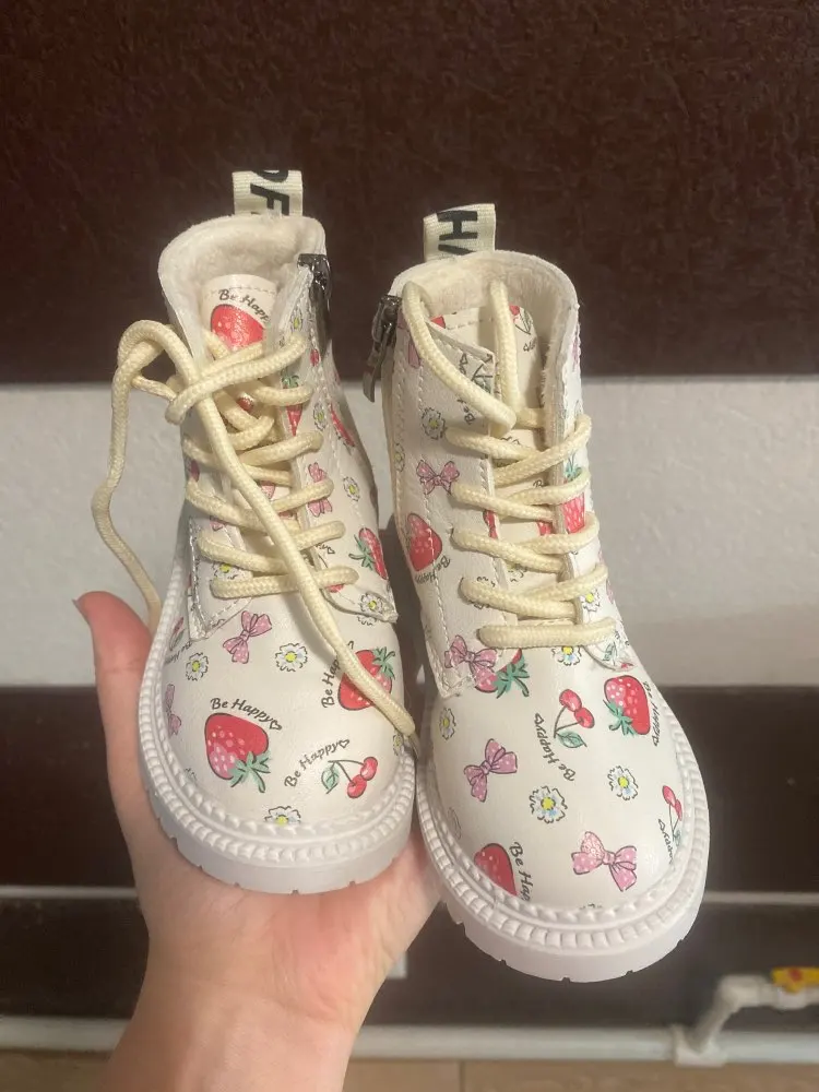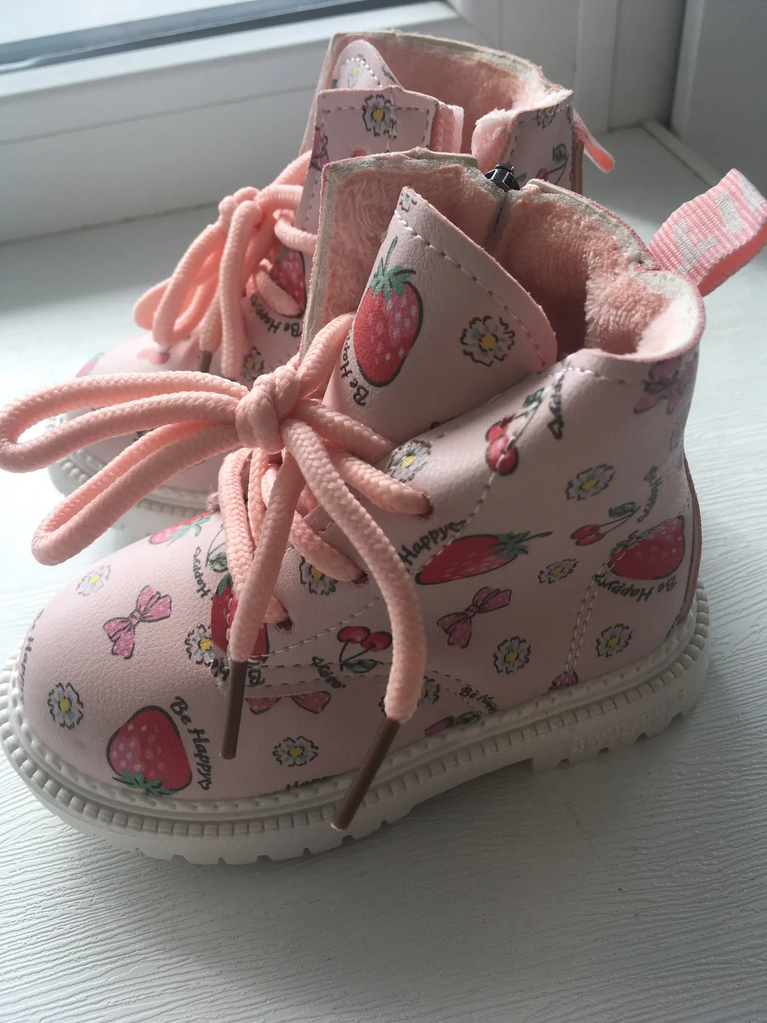 Ботинки Martin для девочек; Модные милые теплые женские ботиночки из искусственной кожи с принтом клубники; Сезон осень-зима; Новинка; Детская обувь из тонкого хлопка