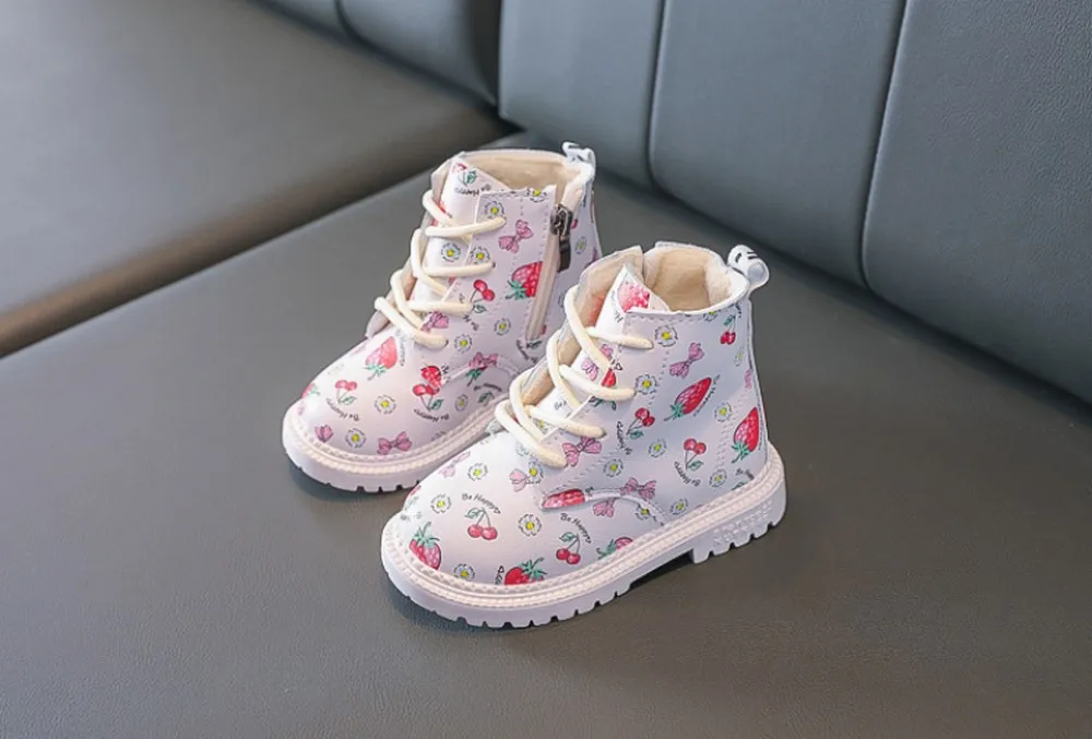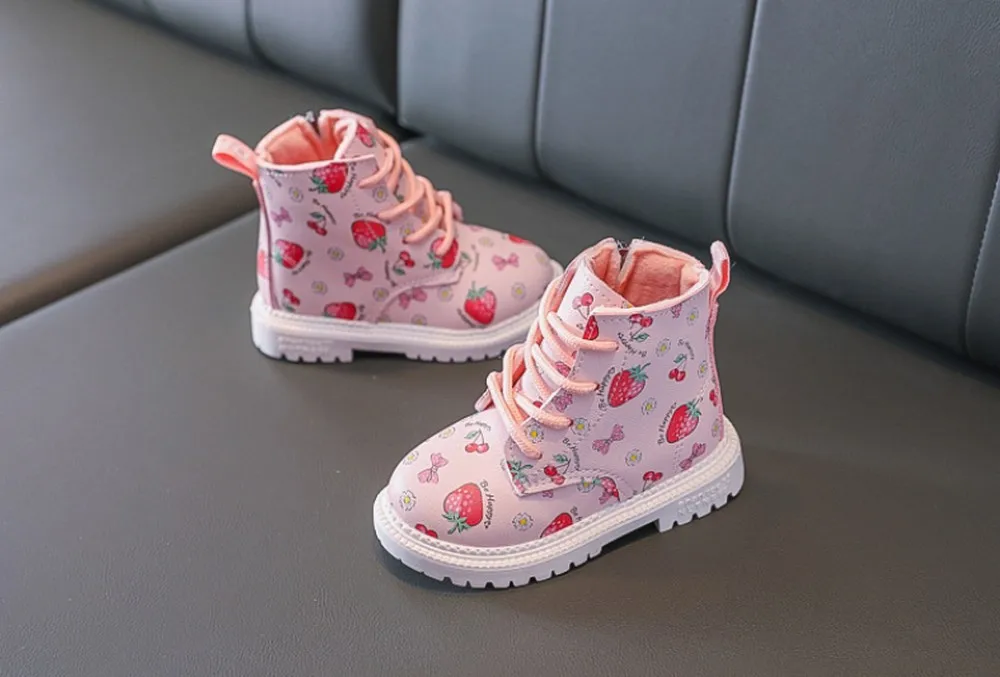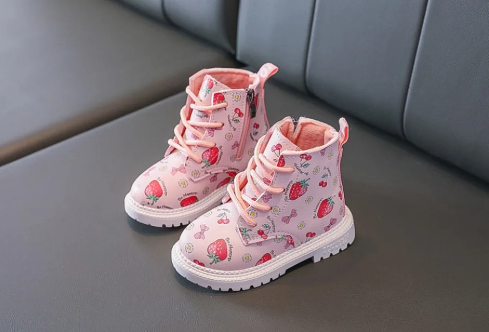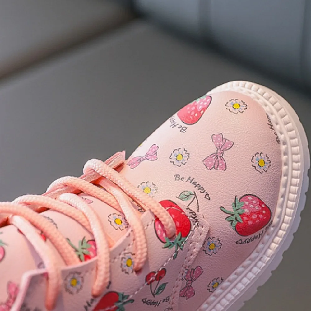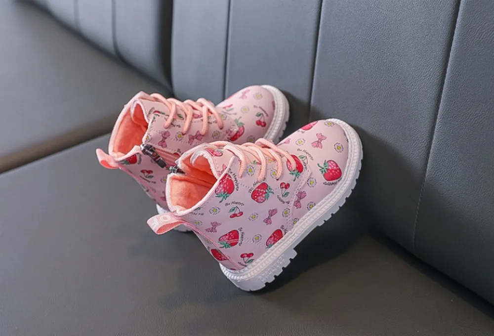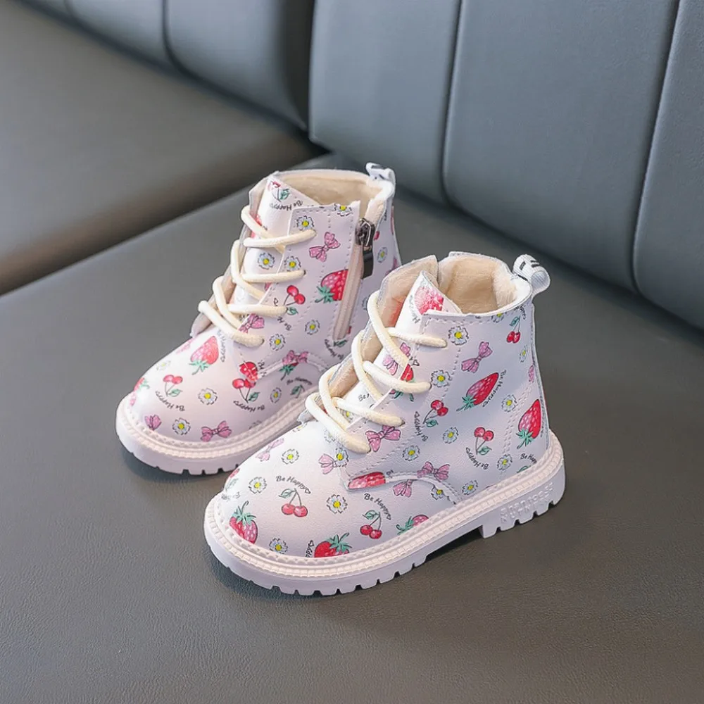 Ботинки Martin для девочек; Модные милые теплые женские ботиночки из искусственной кожи с принтом клубники; Сезон осень-зима; Новинка; Детская обувь из тонкого хлопка