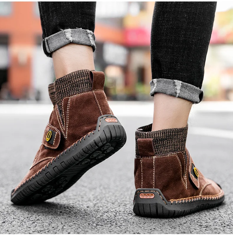 ✬✭✮Если вы не знаете, как выбрать, пожалуйста, свяжитесь с нами. ♈Описание товара: Новый стиль высокое качество замшевые зимние сапоги для мужчин крюк Большой Размеры 48 носки унисекс обувь защиты пальцы, лодыжки ботинки; Мужская обувь; Botines Hombre