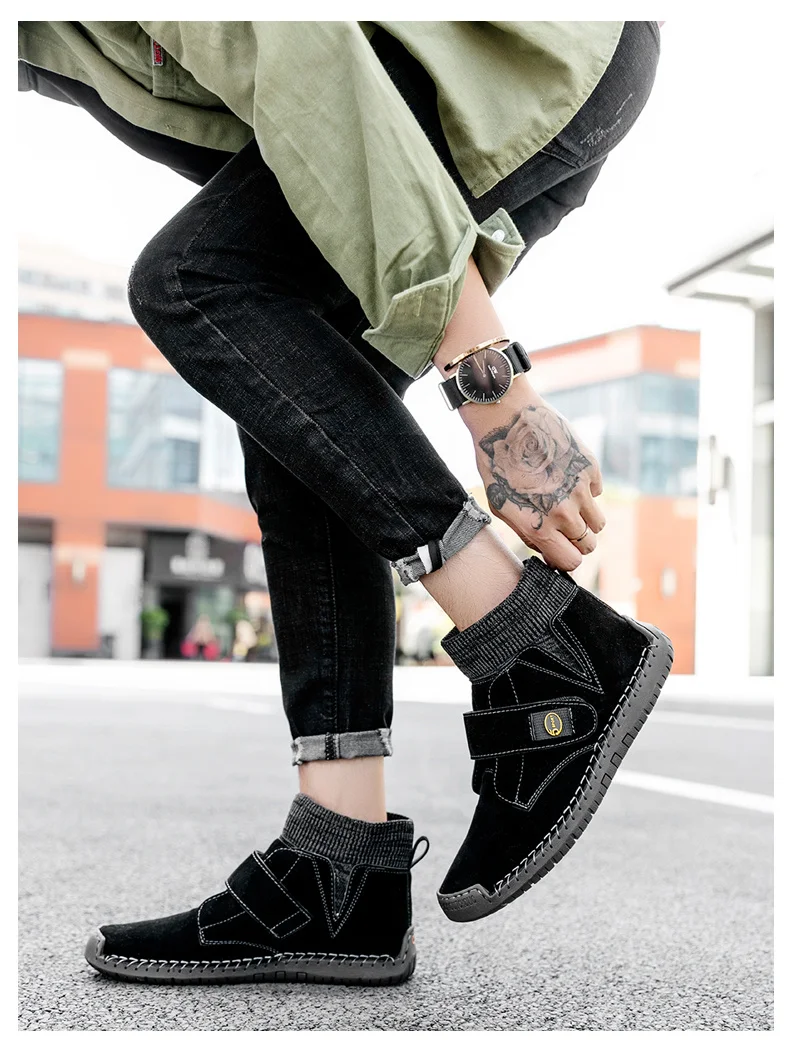 Мужские замшевые ботинки на крючках, черные ботинки-носки унисекс, защитные ботинки, большой размер 48, для зимы, 2019