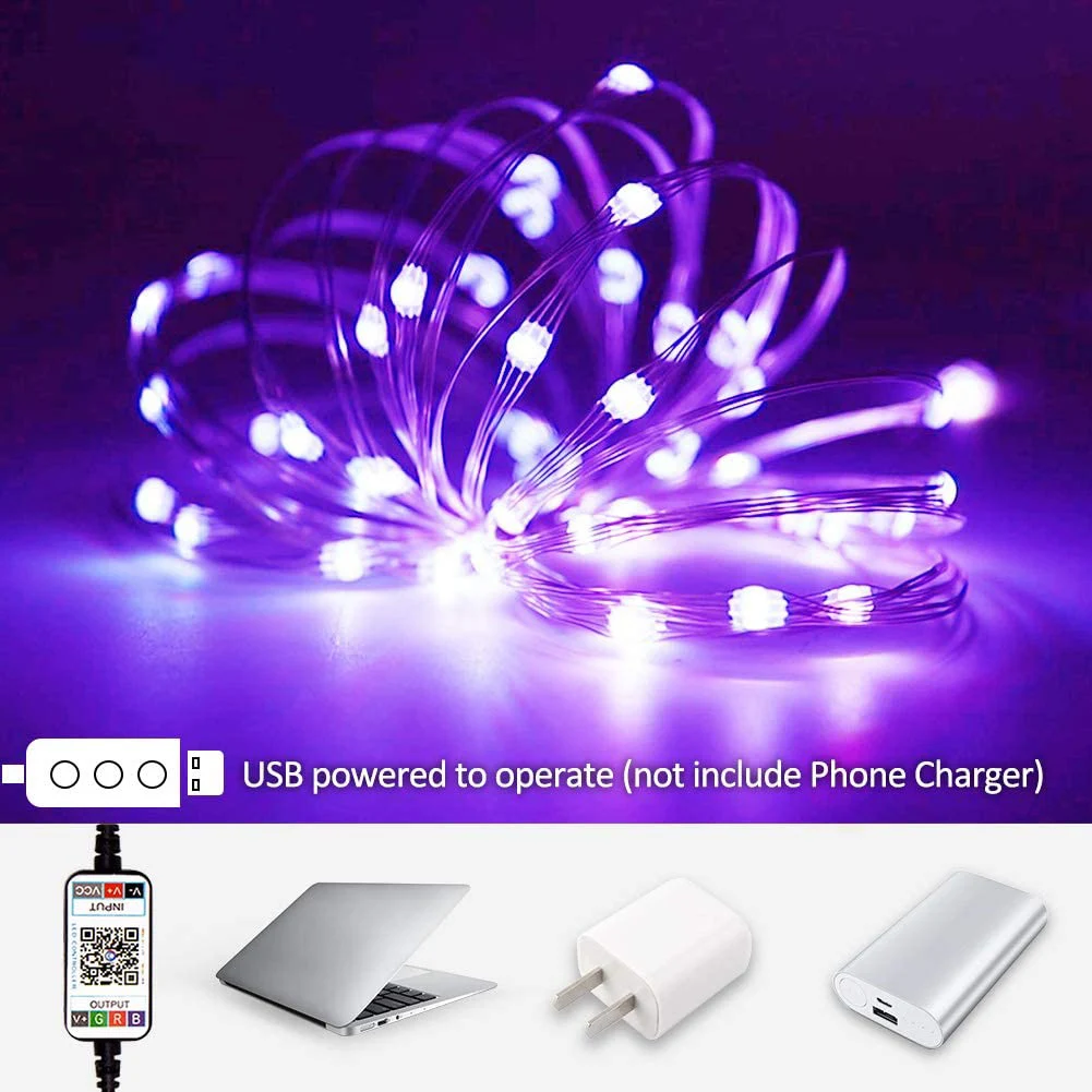 USB СВЕТОДИОДНЫЙ светильник-гирлянда с Bluetooth управлением через приложение медный провод многоцветная струнная лампа водонепроницаемый Сказочный светильник s для декора рождественской елки