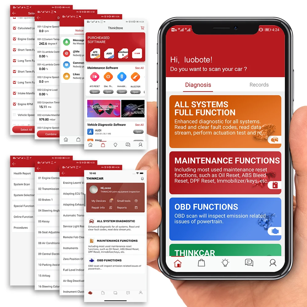 Полный сканер Thinkcar THINKDIAG, 1 год бесплатного обновления всех систем, 16 сбросов, автоматический OBD2 сканер OBDII, диагностический инструмент PK AP200, считыватель