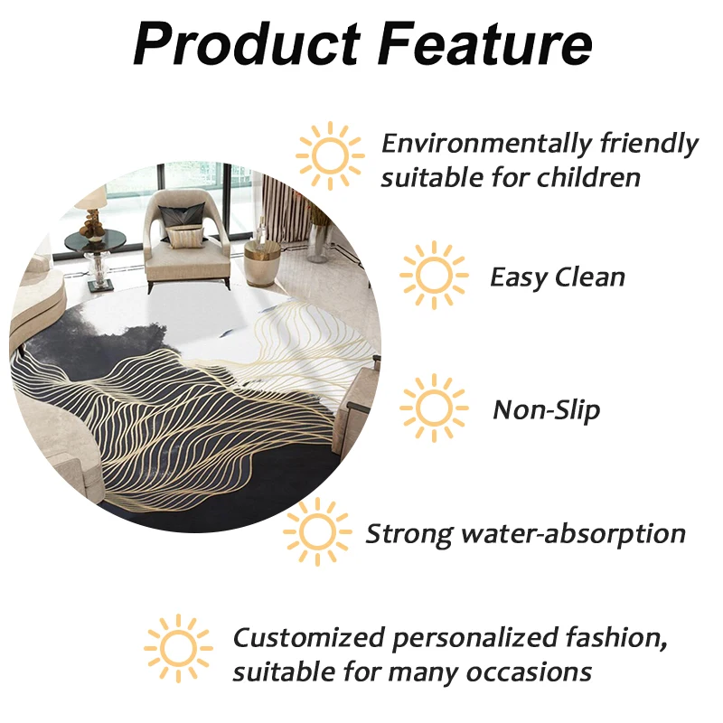 Круглые ковры Bubble Kiss для гостиной, черные, белые, простые, золотые линии, индивидуальные коврики, декор для спальни, нескользящий коврик для пола