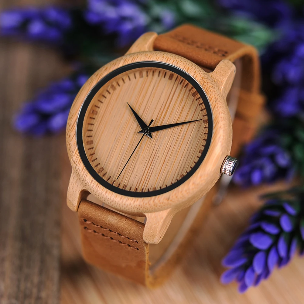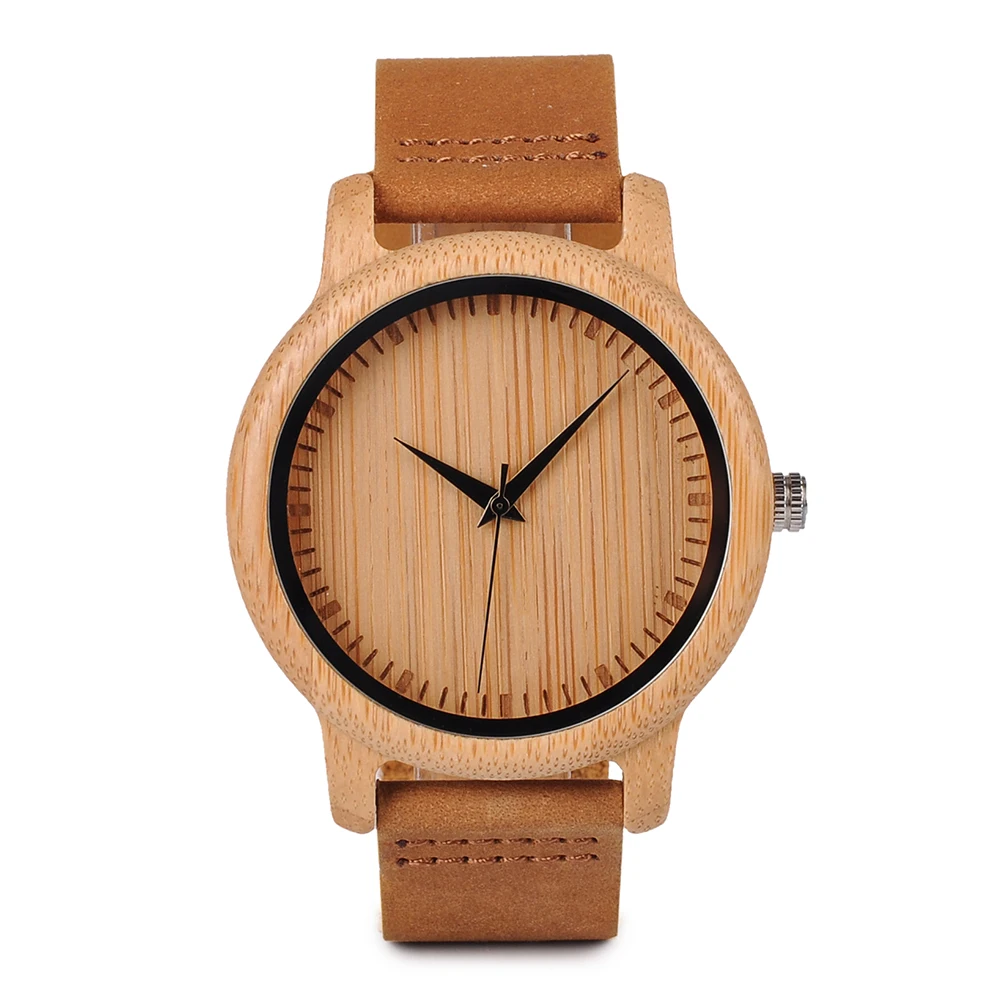 Часы наручные мужские с бамбуковым ремешком, кварцевые, с кожаным ремешком