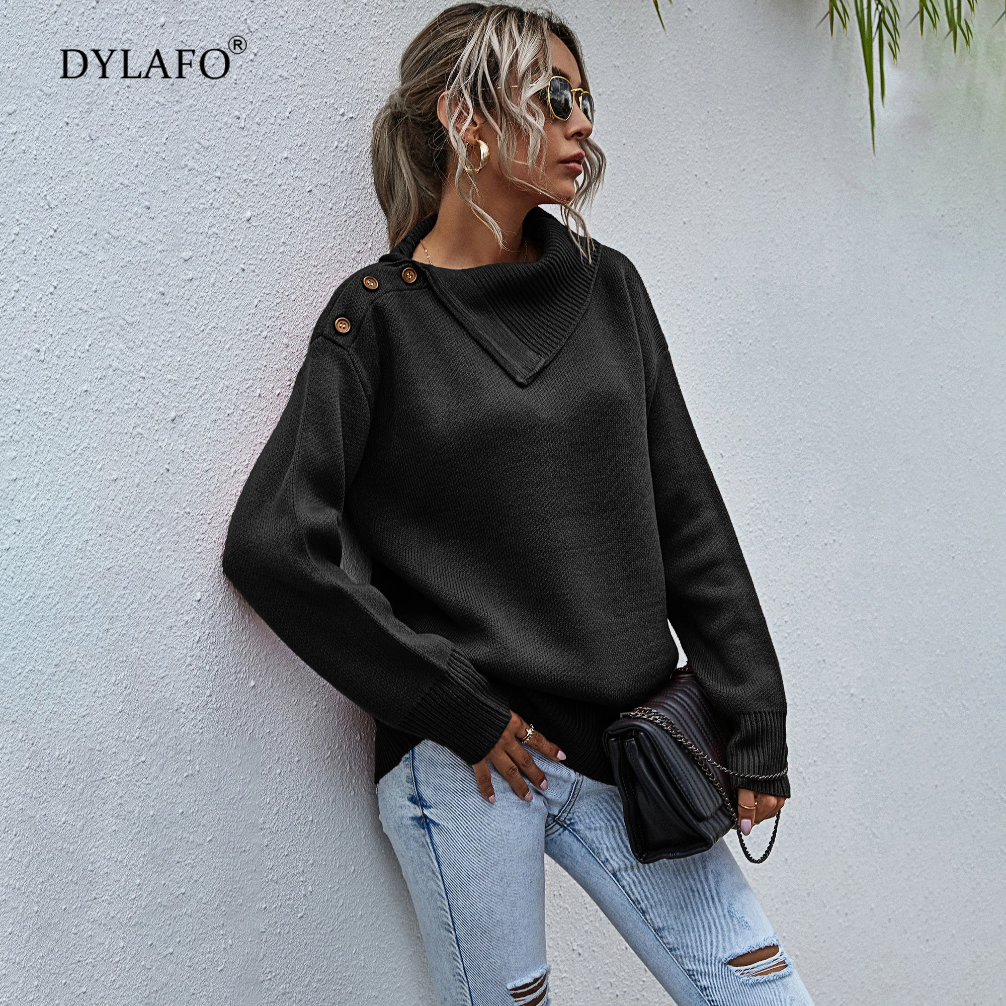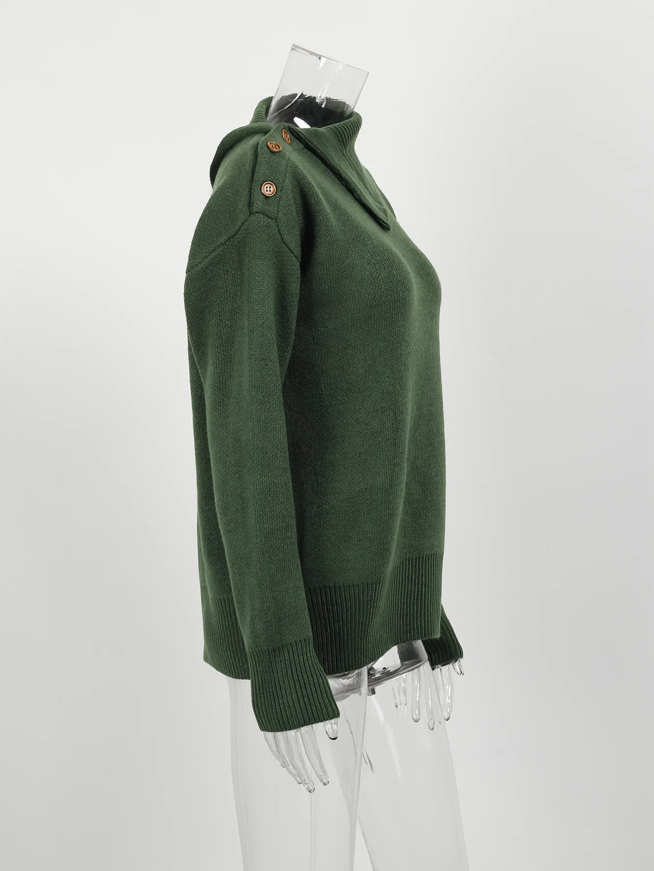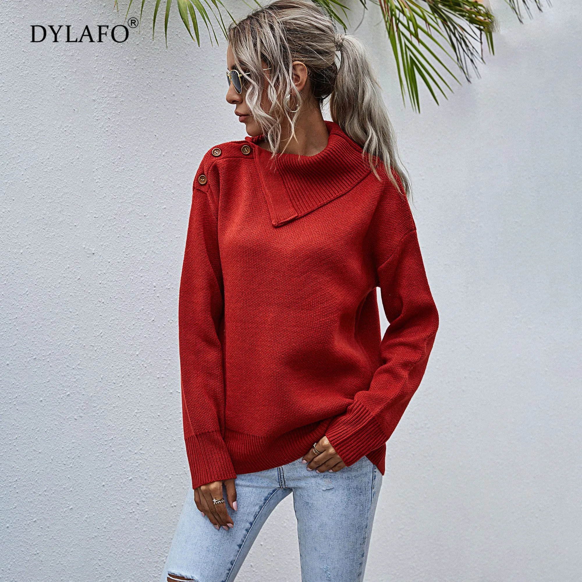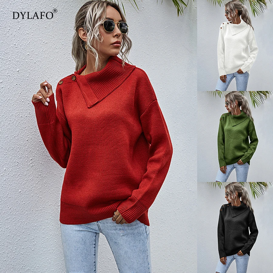 Свитер женский трикотажный с воротником-хомутом, на пуговицах, Осень-зима 2020
