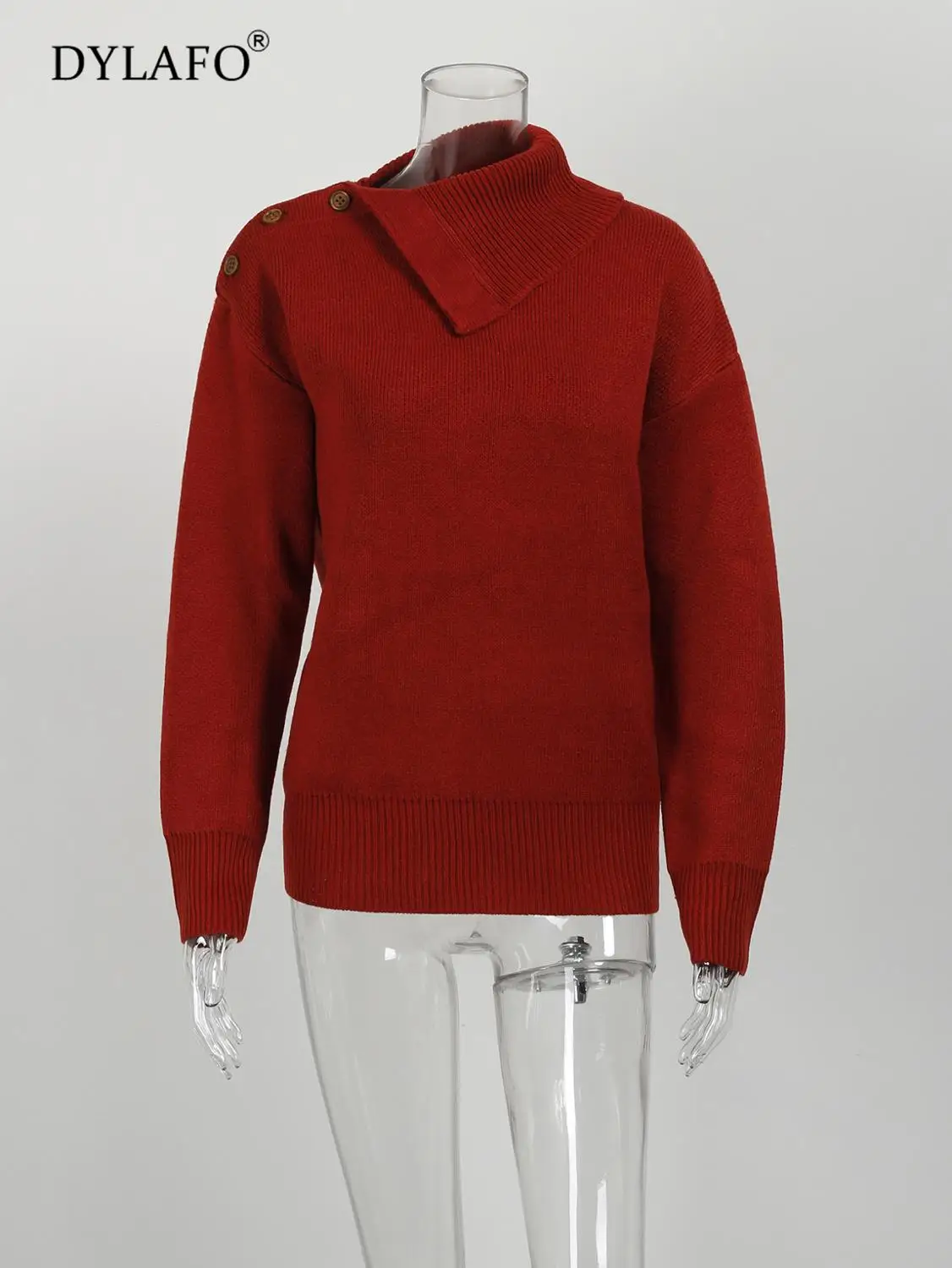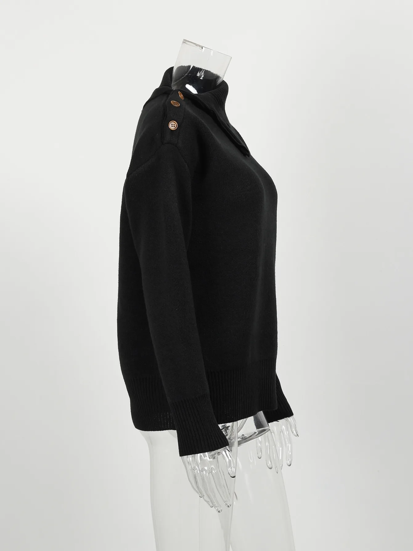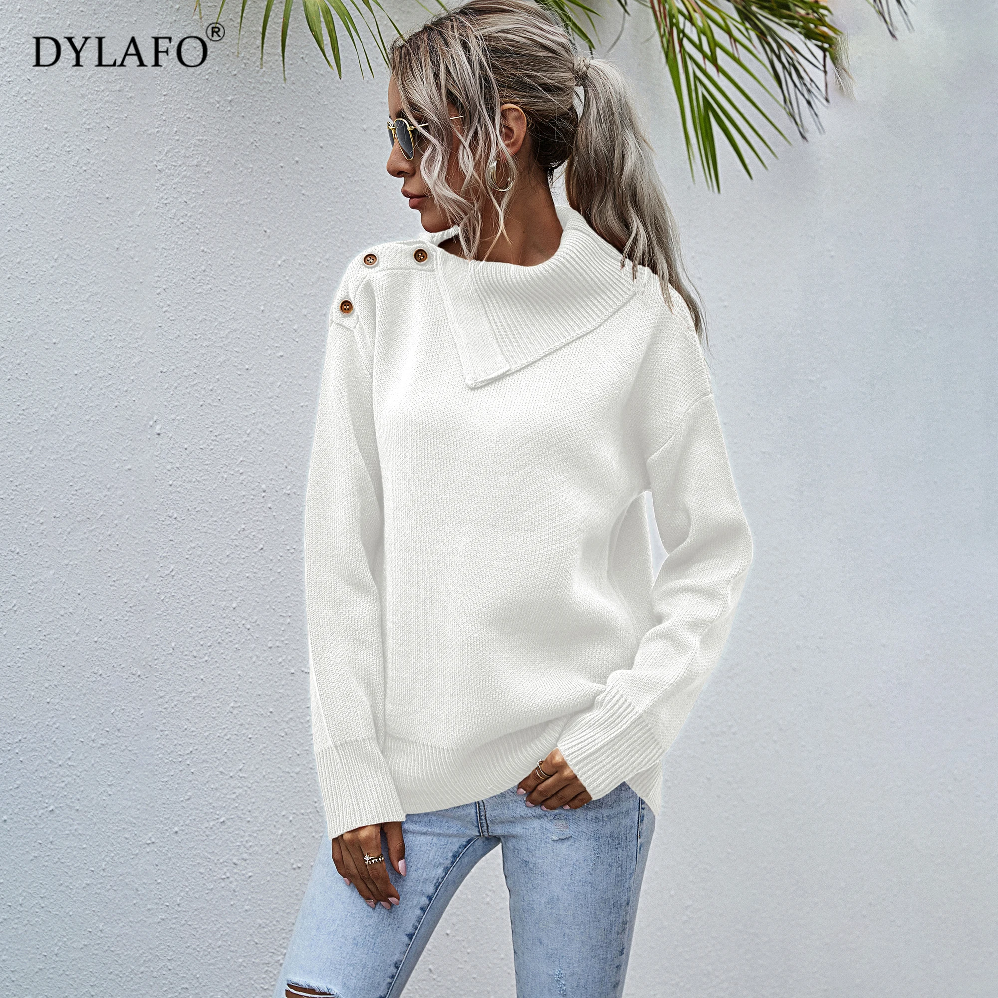 Свитер женский трикотажный с воротником-хомутом, на пуговицах, Осень-зима 2020