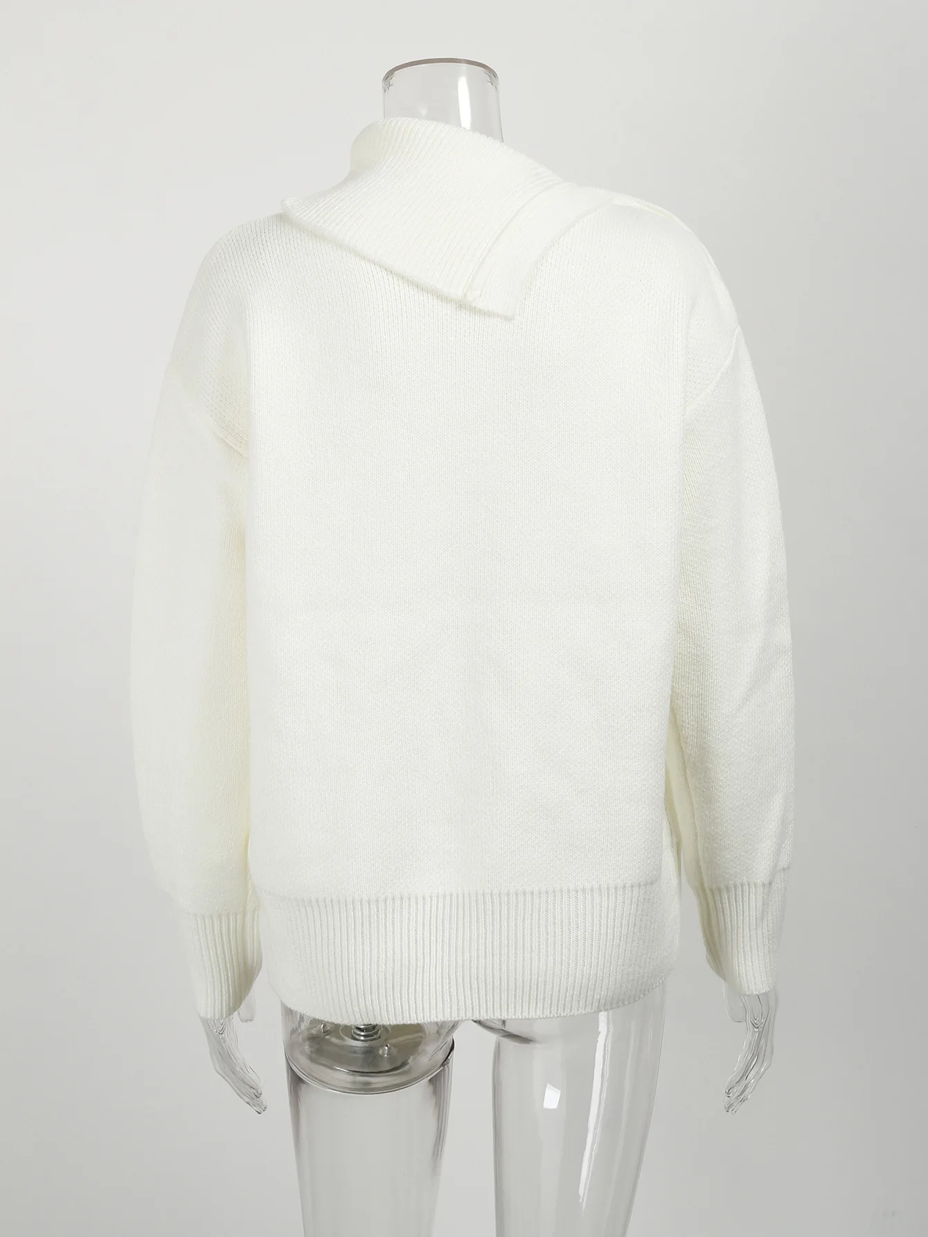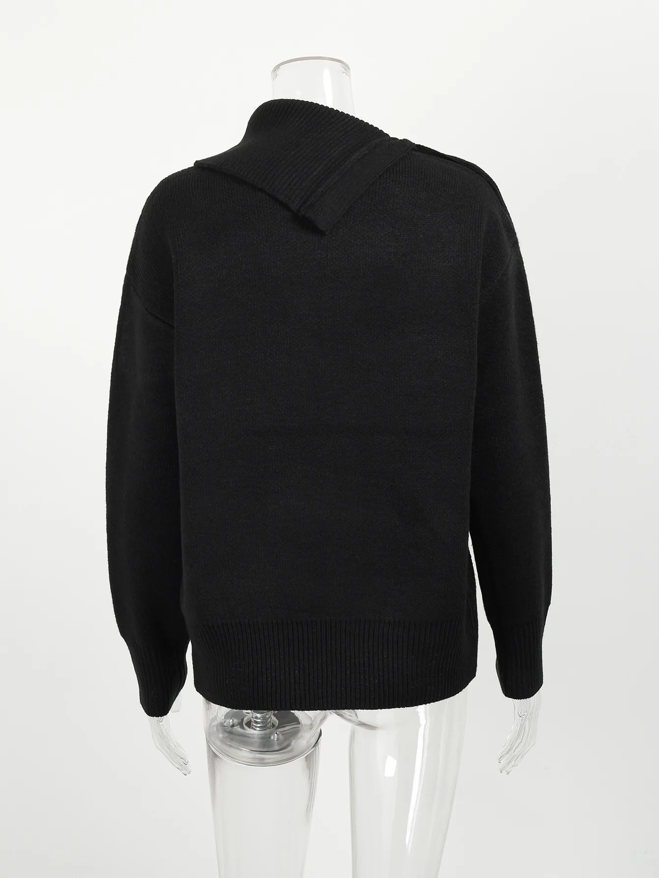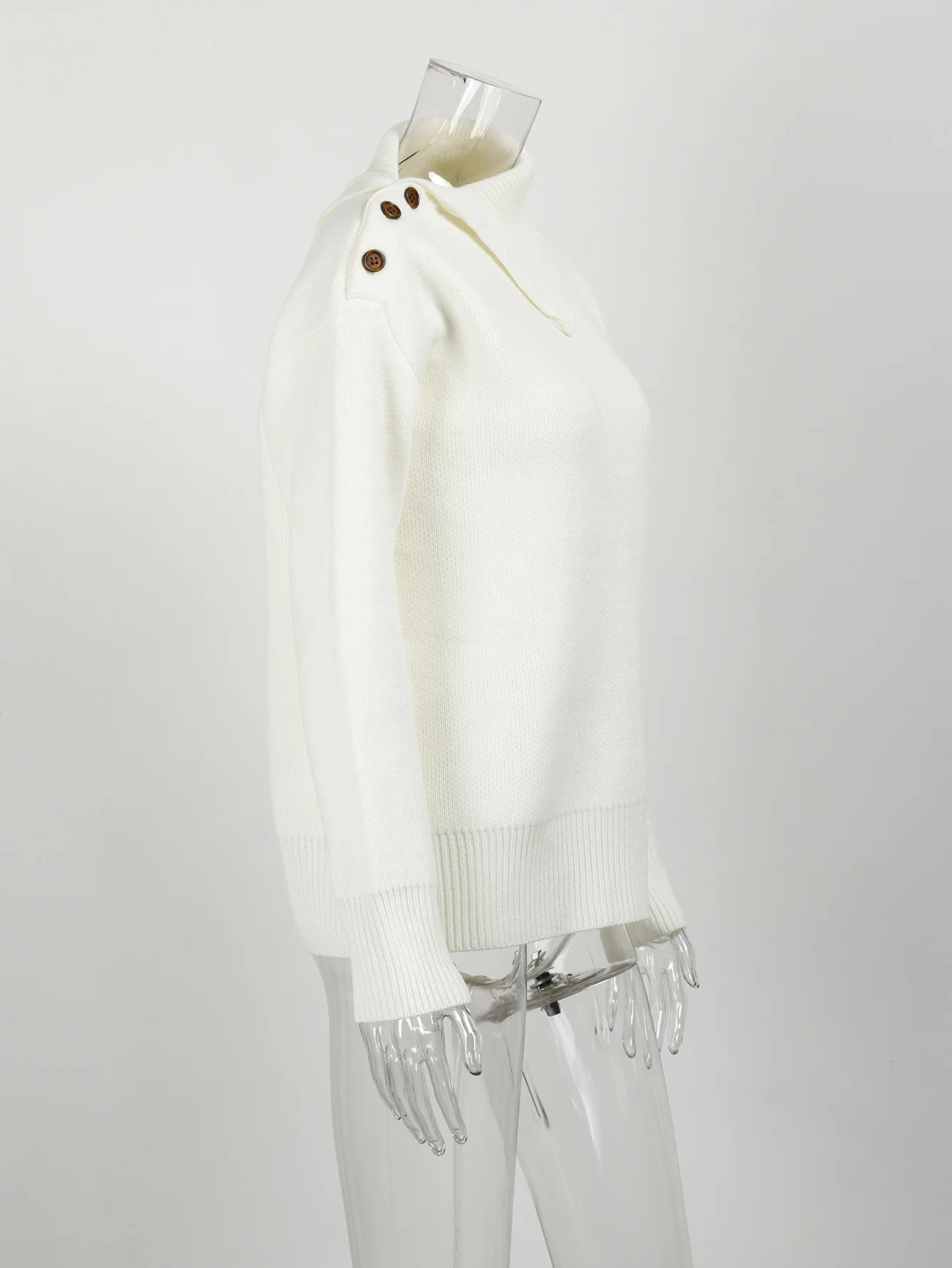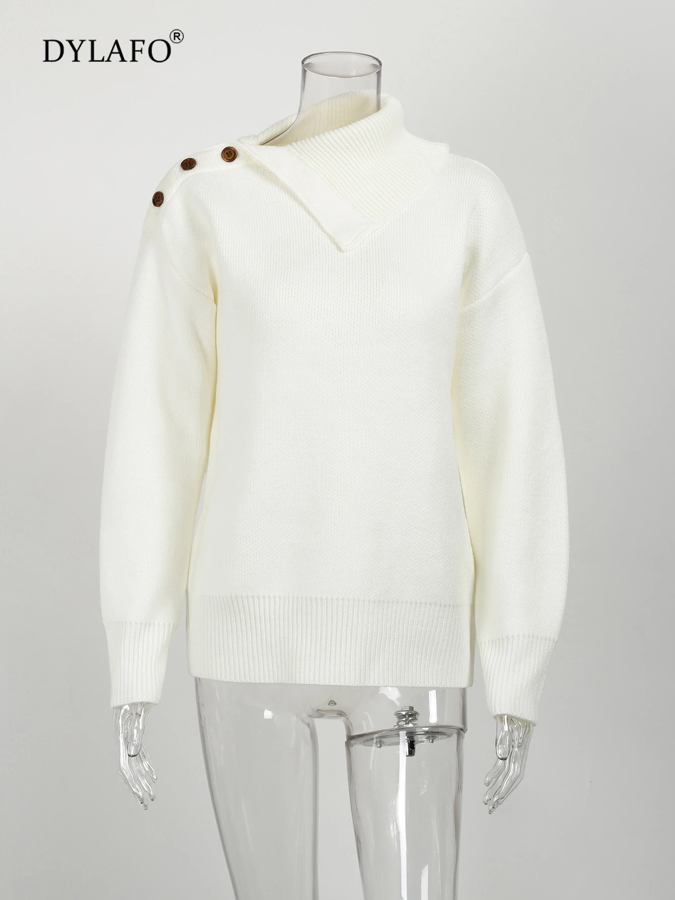 Свитер женский трикотажный с воротником-хомутом, на пуговицах, Осень-зима 2020