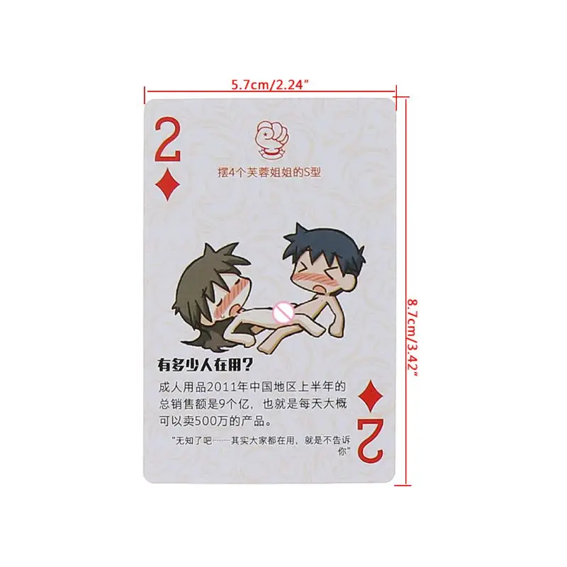 100% новый товар высокого качества. Будь то ночной клуб в баре или дом, Веселый покер-отличный выбор для игр. Каждая игральная карта имеет ткань с каменными ножницами и может играть в догадку. 54. Секс-позы сообщают вам больше о секс-позе. Также есть знания о здоровье. Фактический товар отсутствует. Цвет: как показано на фотографии Материал: Бумага Размеры: 8,7 см (3.42in) × 5,7 см (2.24in) Количество: набор-1 шт. Примечание: Пожалуйста, имейте в виду, что допускается отклонение в диапазоне 1-3 мм из-за проведения замеров вручную. Спасибо! Пожалуйста, убедитесь, что вы не возражаете перед покупкой. Из-за разницы между различными мониторами изображение может не отражать фактический цвет изделия. Спасибо! Посылка включает в себя: 1 набор × карточка для покера