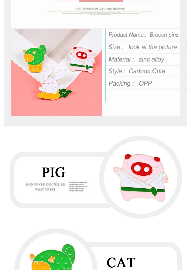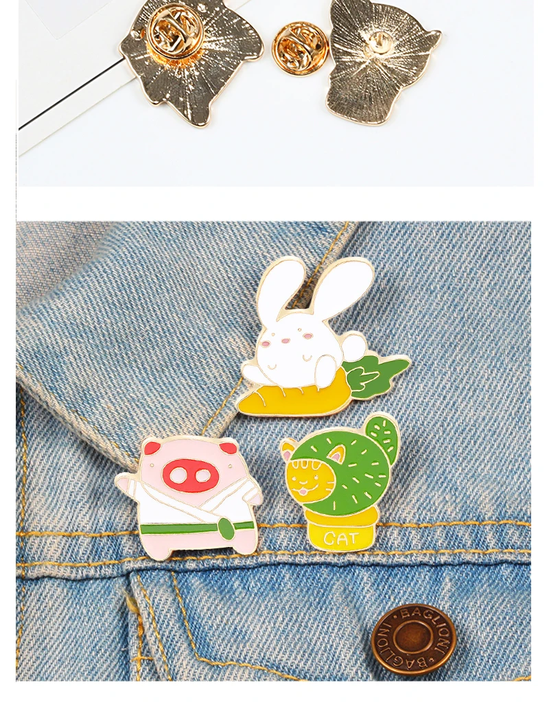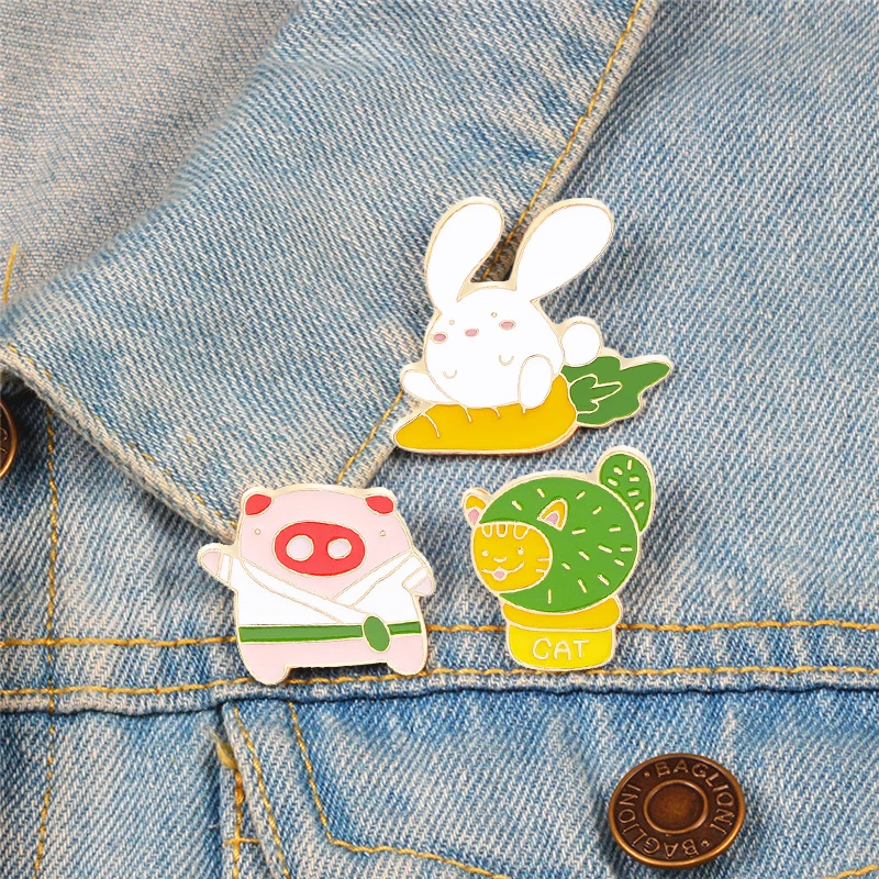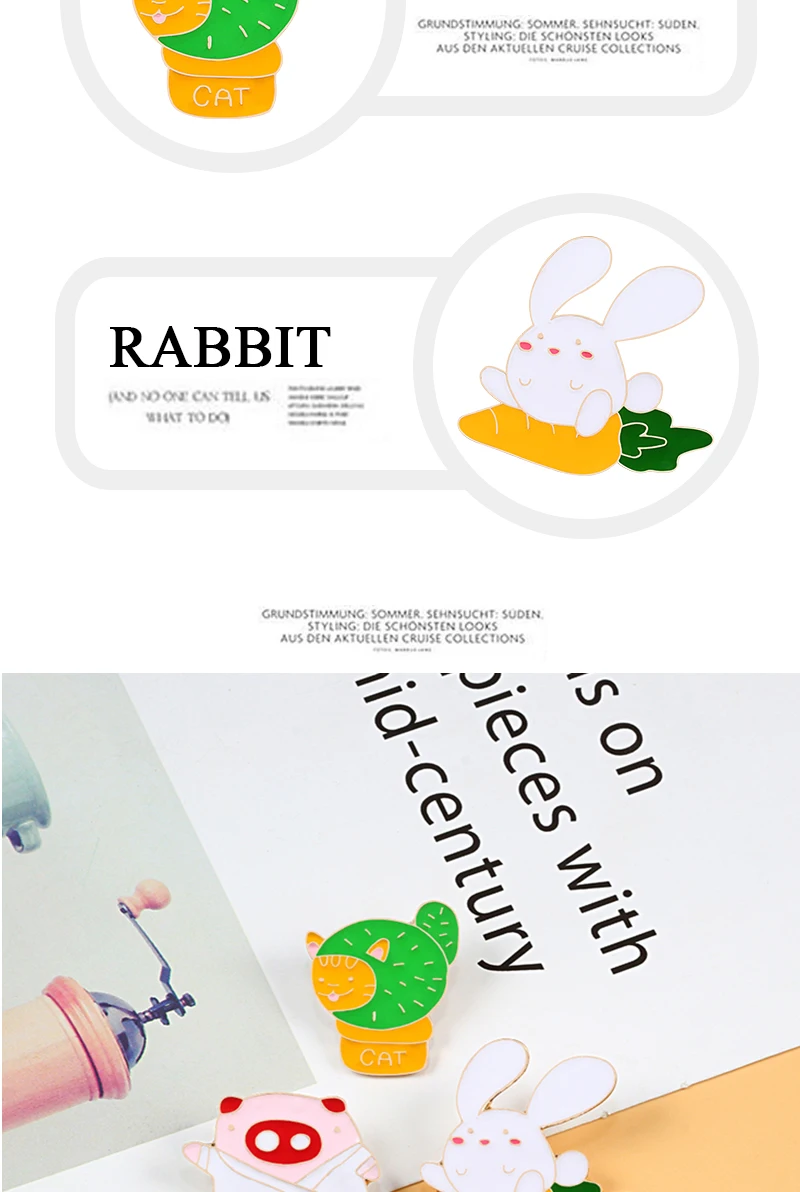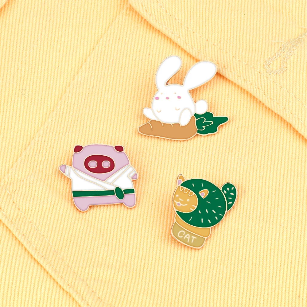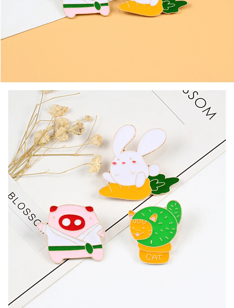 Креативные Милые Броши кролик в виде Свинки-повара, в виде кошки, эмалированная булавка, металлическая кнопка, значок, одежда Кепка, отворот, булавки, ювелирные изделия, подарки для друзей