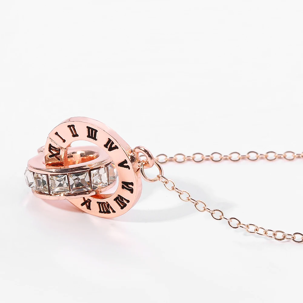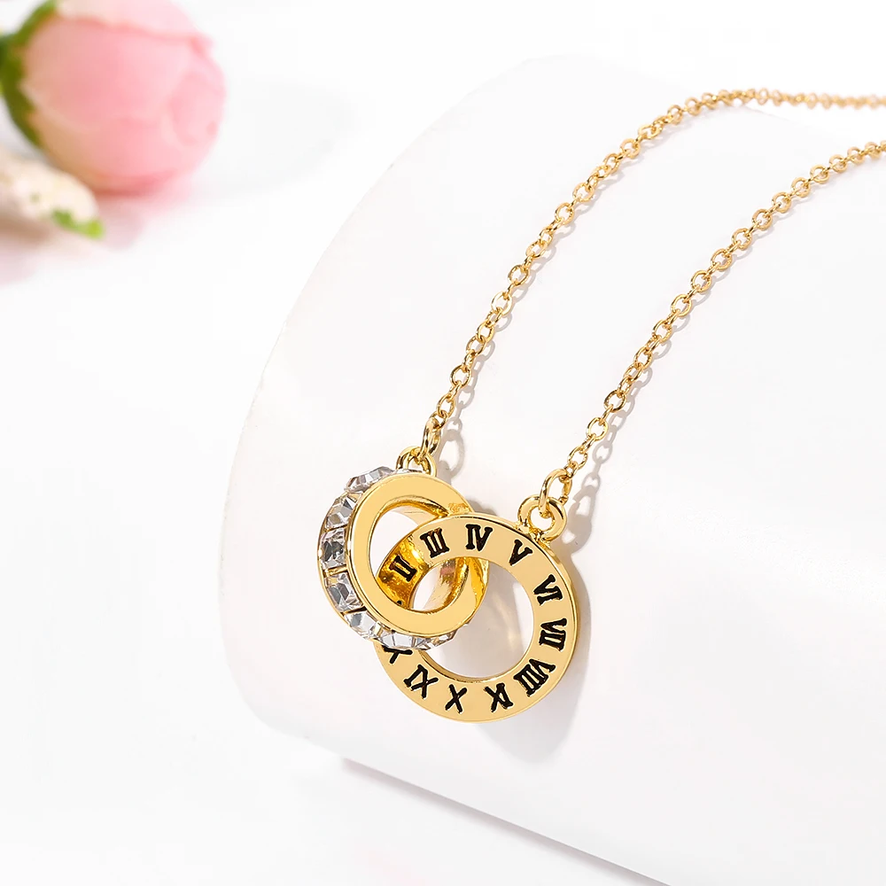 Колье с кристаллами и римскими цифрами, женское ожерелье с двойной пряжкой, Женское Ожерелье до ключиц из титановой стали и золота с подвеской, ювелирные изделия