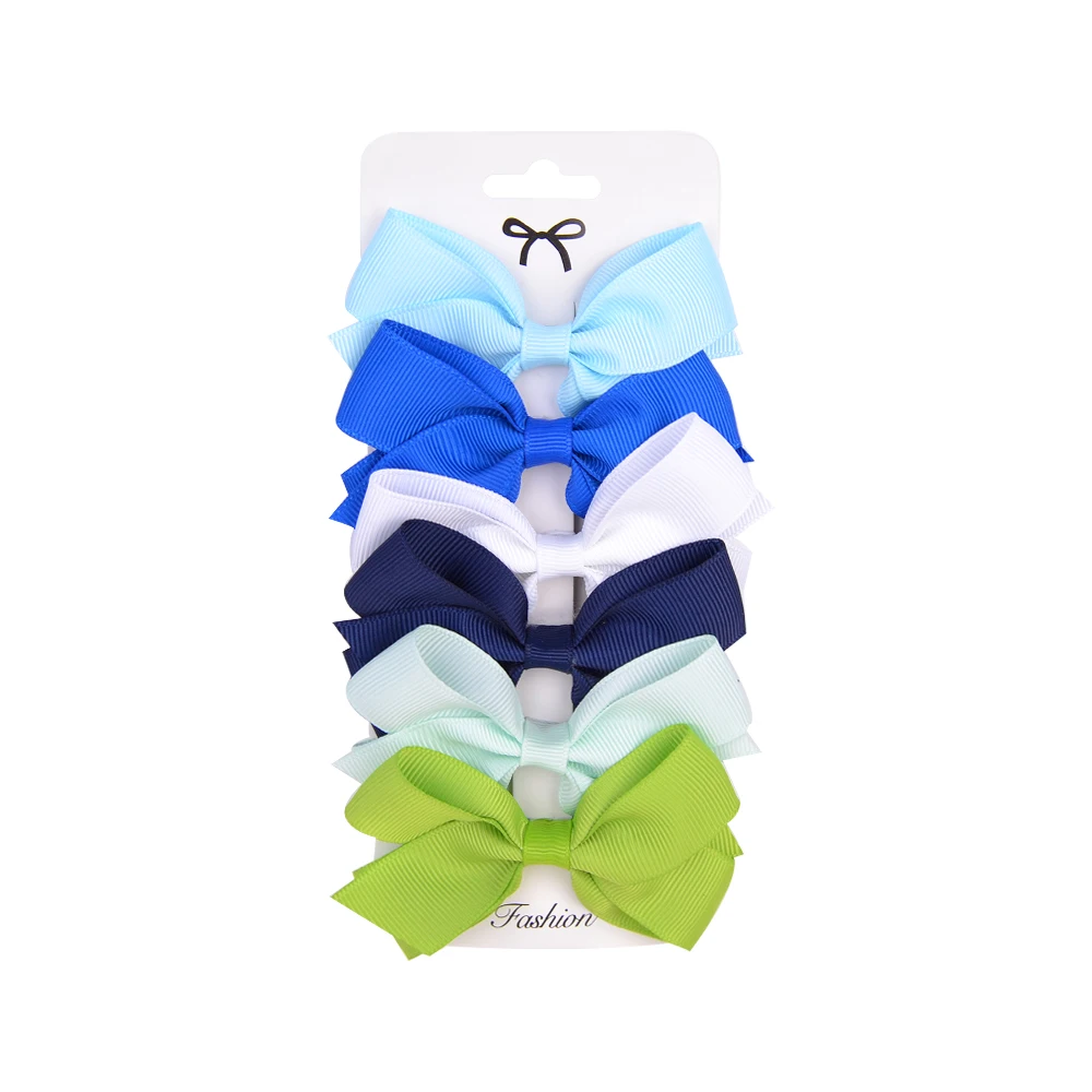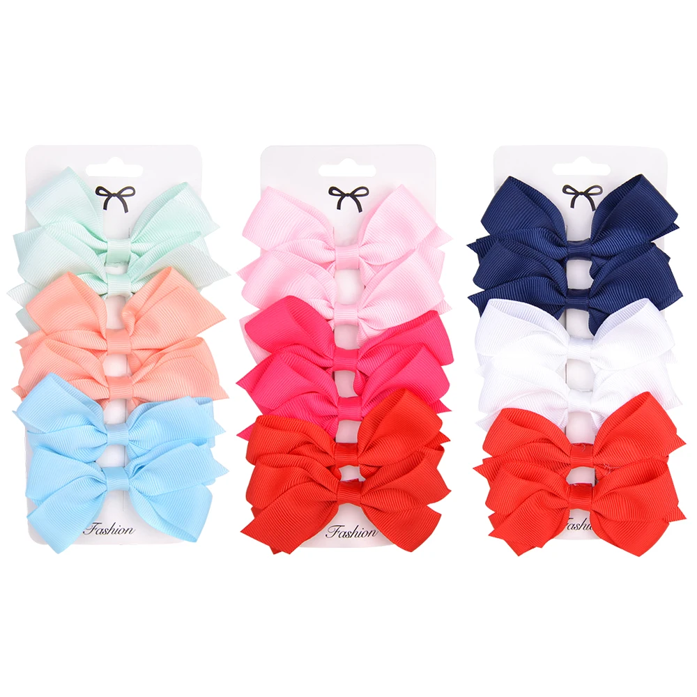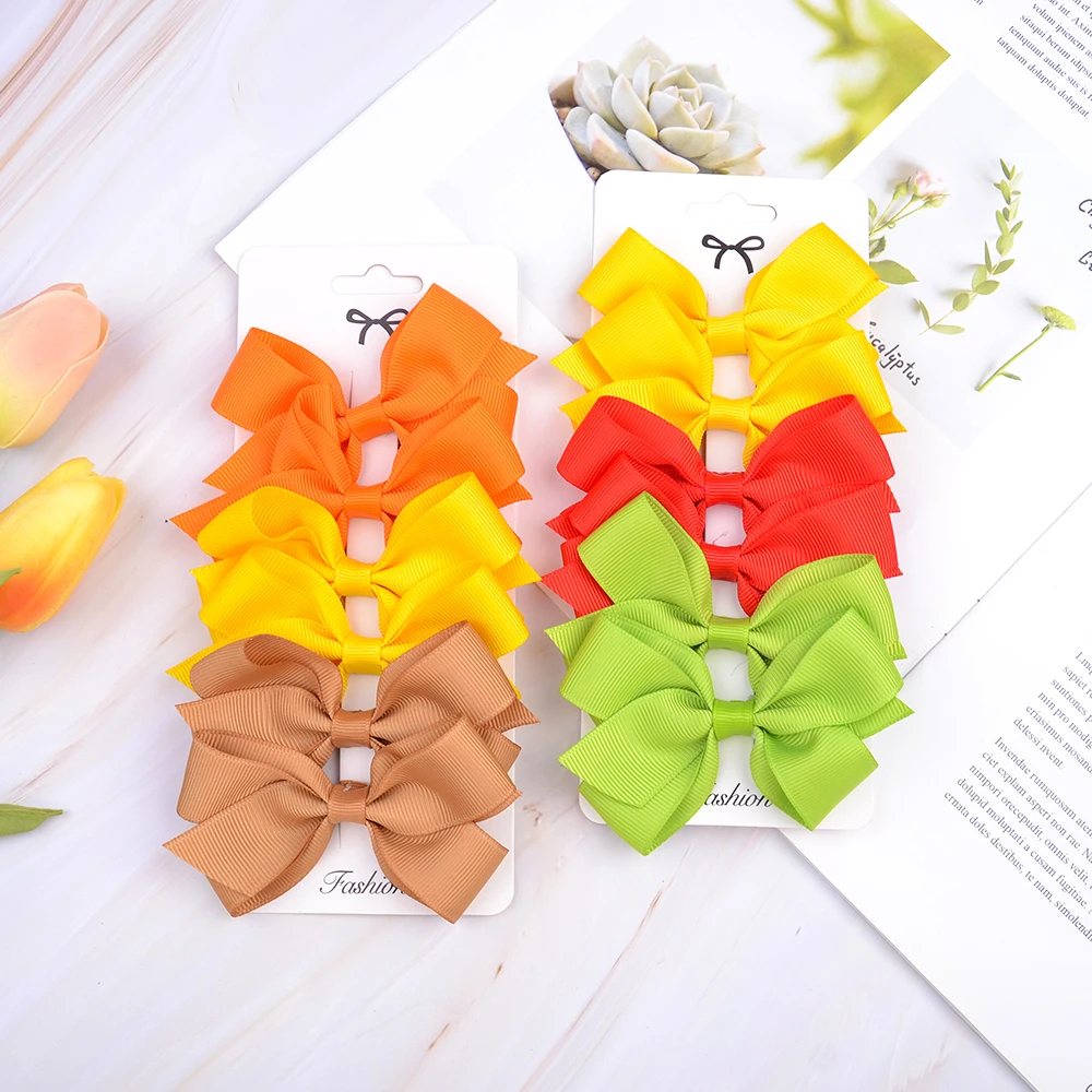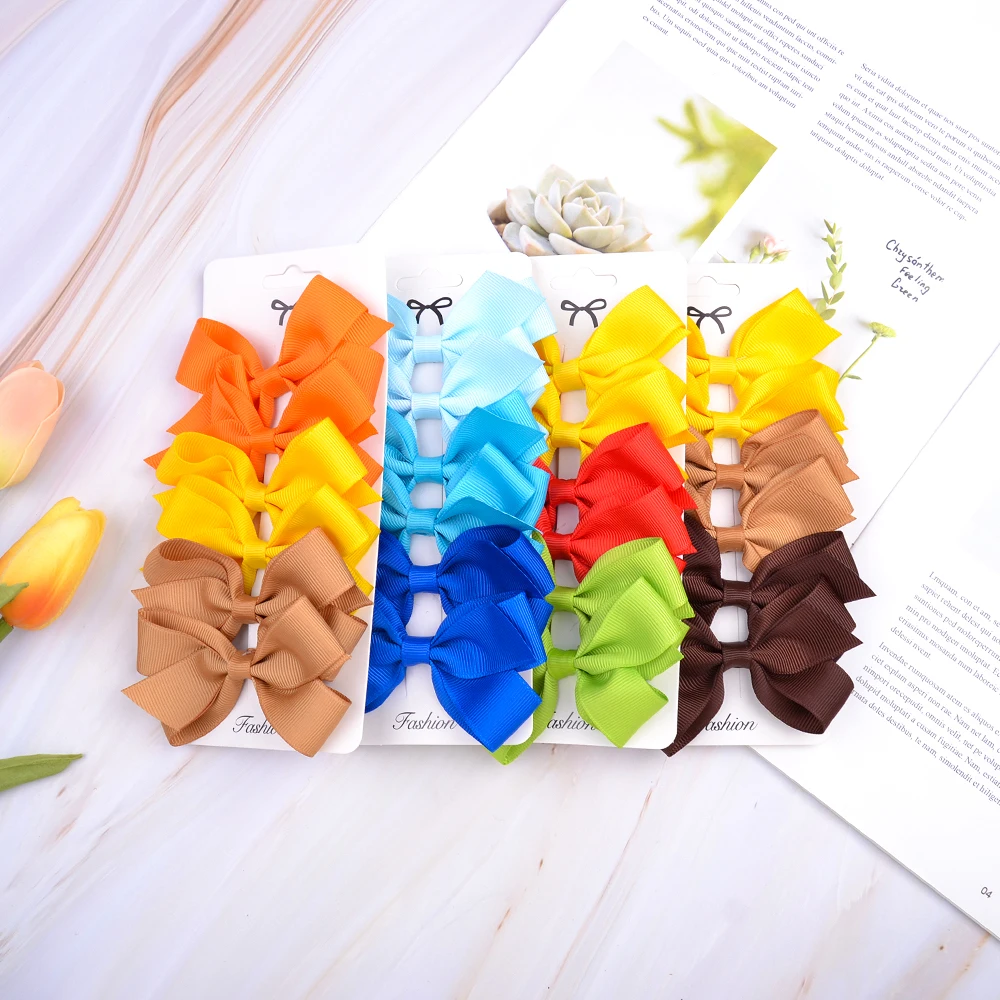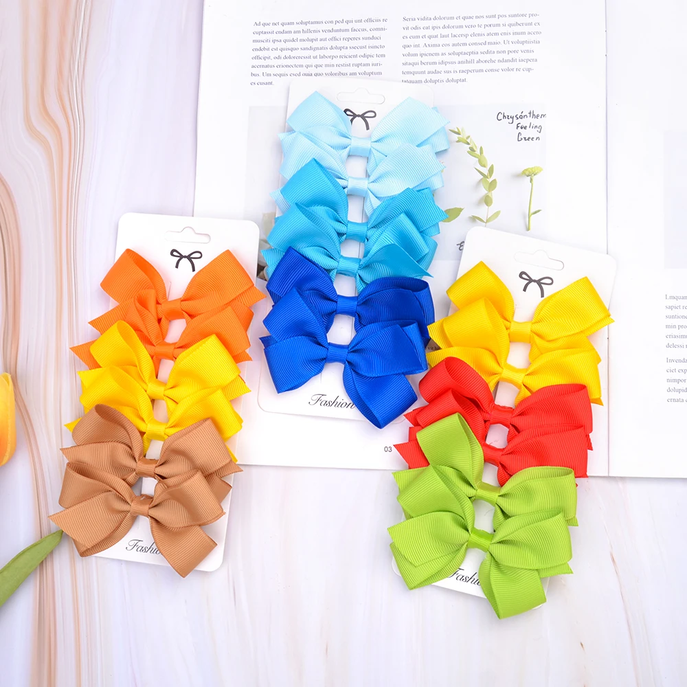 6 шт./лот, милые яркие цвета, банты для волос с зажимом для девочек, однотонные бутик-ленты, заколки для волос, головные уборы, модные аксессуары для волос