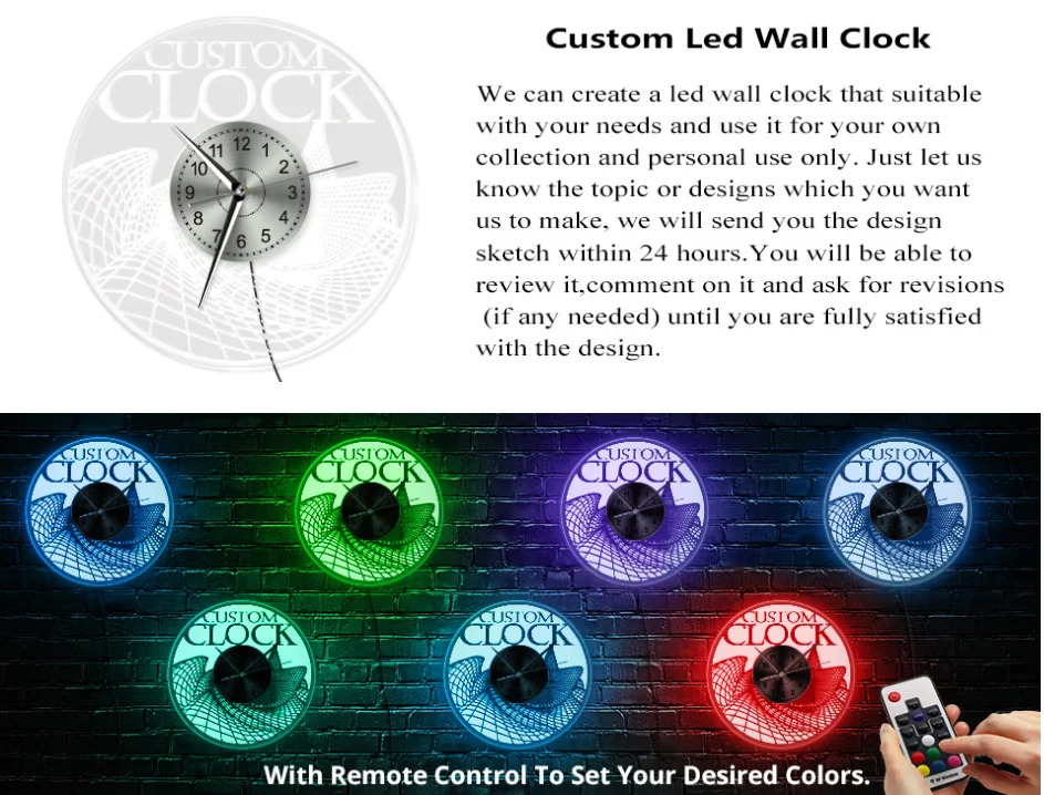 Этот настенные часы с подсветкой изготовлен из прозрачного акрила 3 мм со светодиодным компонентом. Эти 12-дюймовые круглые часы оснащены светодиодами, которые просвечивают по центру часов и освещают цифры и края. Мы также можем сделать для вас любой индивидуальный дизайн, если вам нужен дизайн на заказ или для оптовых заказов, пожалуйста, свяжитесь с нами.