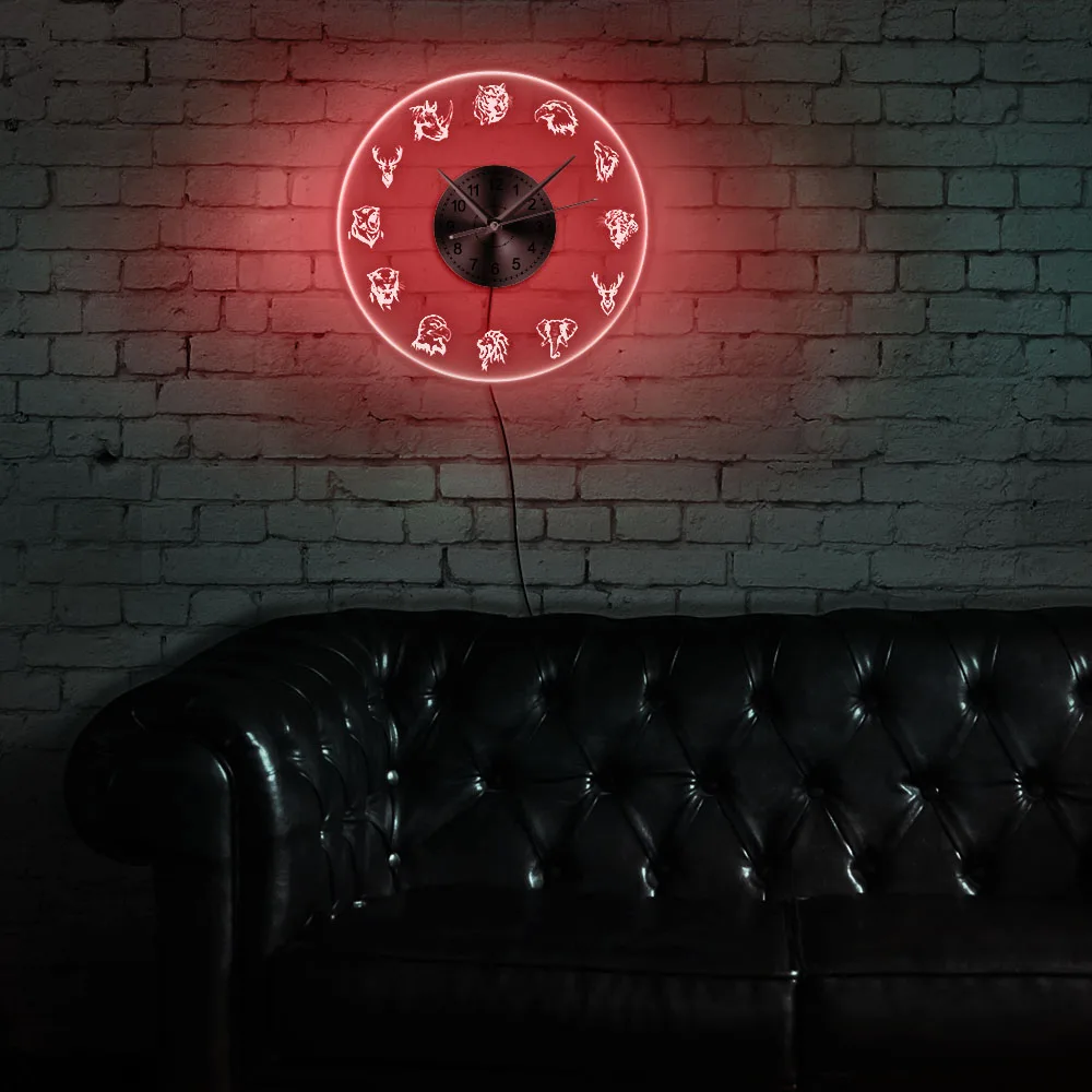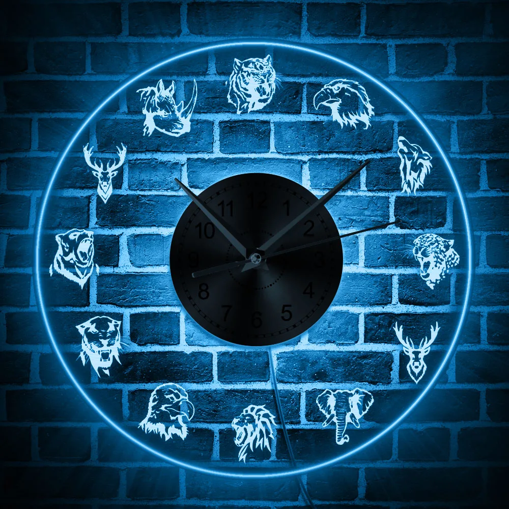 Настенные часы с изображением леса, дикой природы, животных, современные настенные часы, сафари, портрет с животными, светодиодная вывеска, детская комната, домашний декор, часы