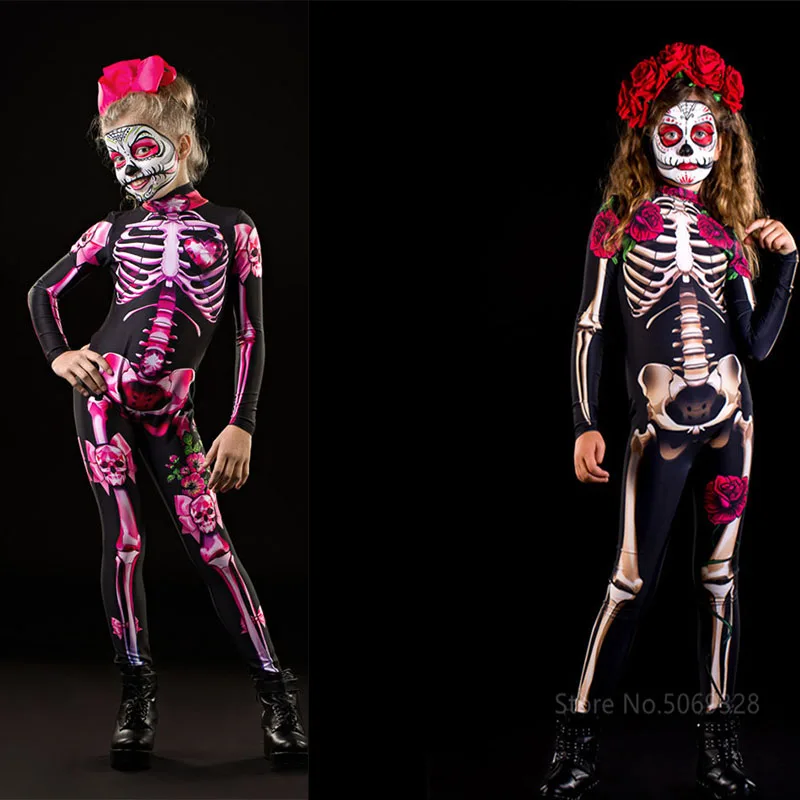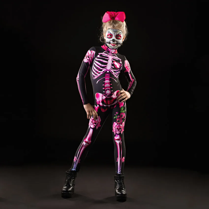 Комбинезон для косплея для взрослых, детей, Хэллоуина, скелет, розо...