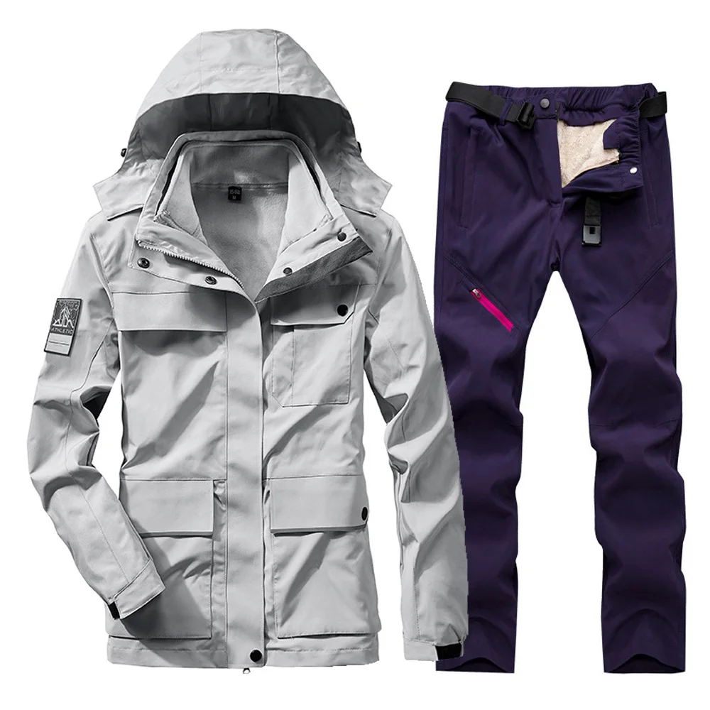Новый женский лыжный комплект, Толстая теплая водонепроницаемая ветрозащитная куртка для сноубординга, лыжный костюм для альпинизма, зимние костюмы
