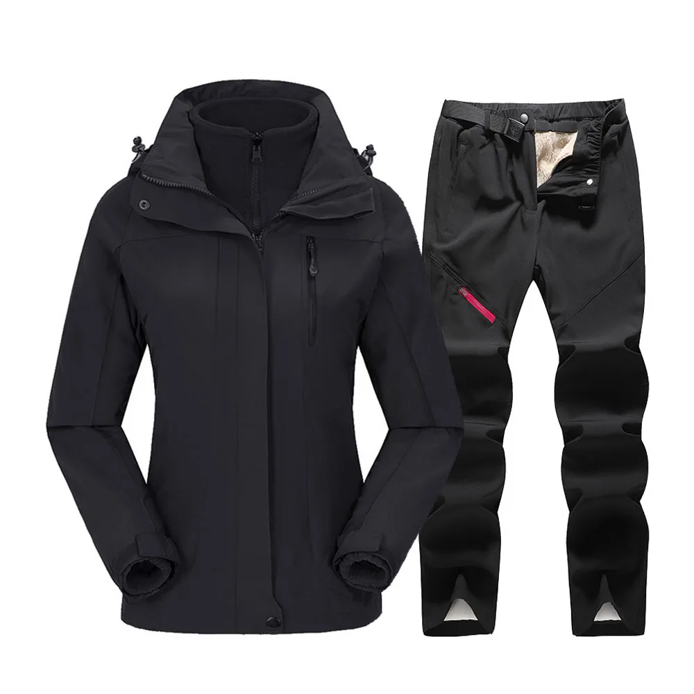 Лыжная куртка и брюки для женщин 2 в 1 плотный теплый лыжный костюм...