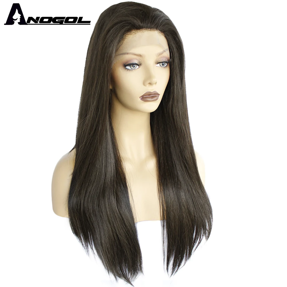 Бренд Anogol, высокая температура, волокно, длинные прямые #4, черные u-образные кружевные парики, 613, блонд, синтетические кружевные передние волосы, парики для женщин
