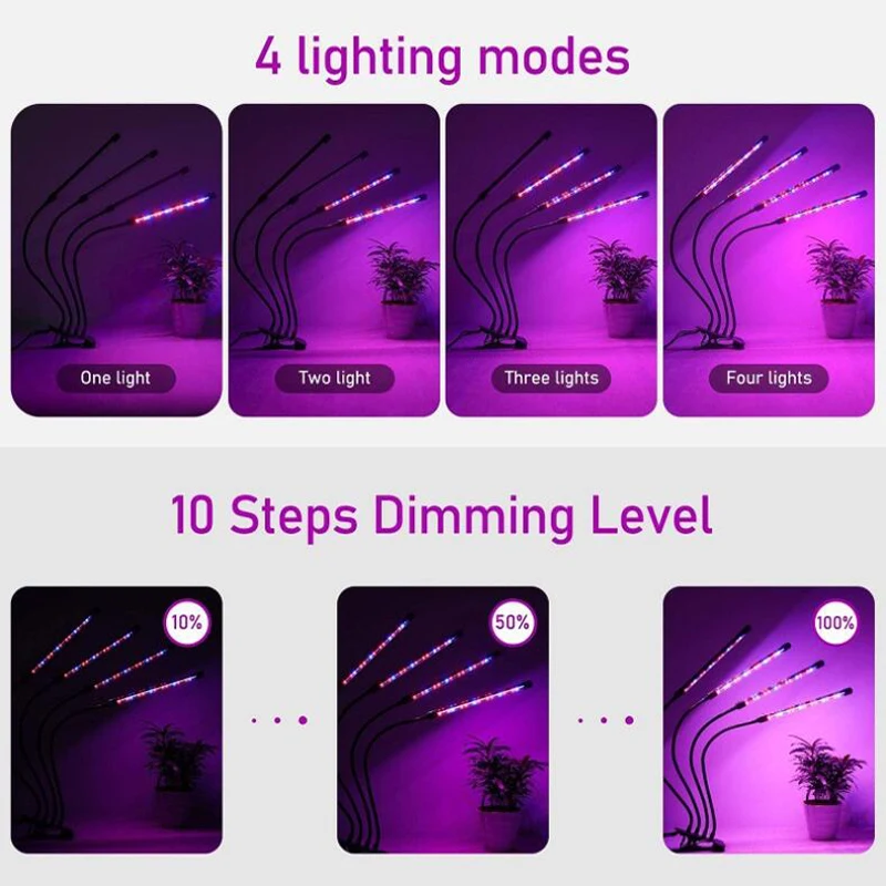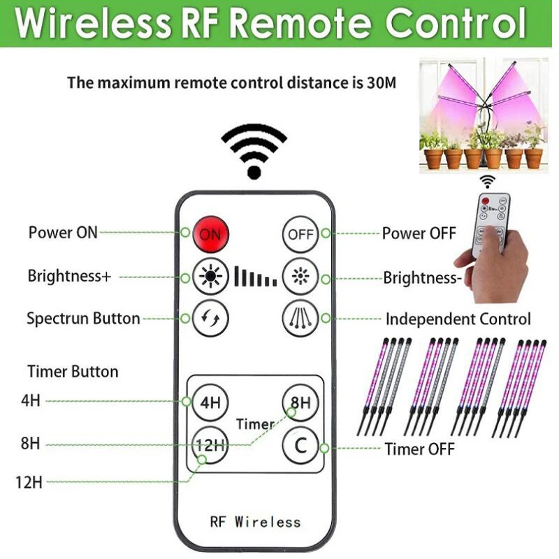 Светодиодный светильник для выращивания растений с дистанционным управлением, водонепроницаемый USB светильник полного спектра для комнатных цветов, овощей, семян с приглушенным таймером