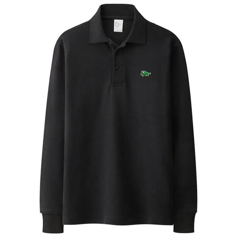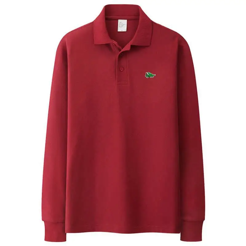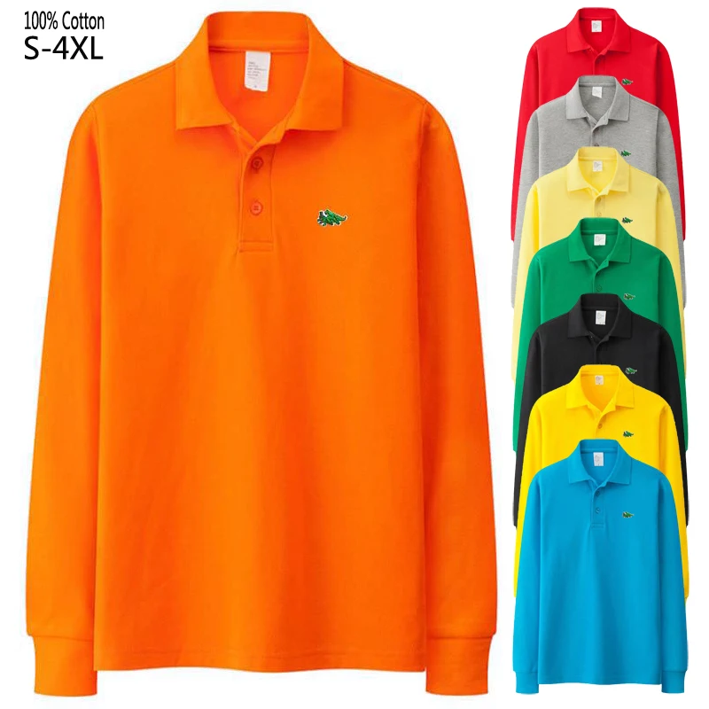 Рубашка-поло мужская с вышивкой, хлопок 100%, с длинным рукавом, Повседневная модная с лацканами, осень