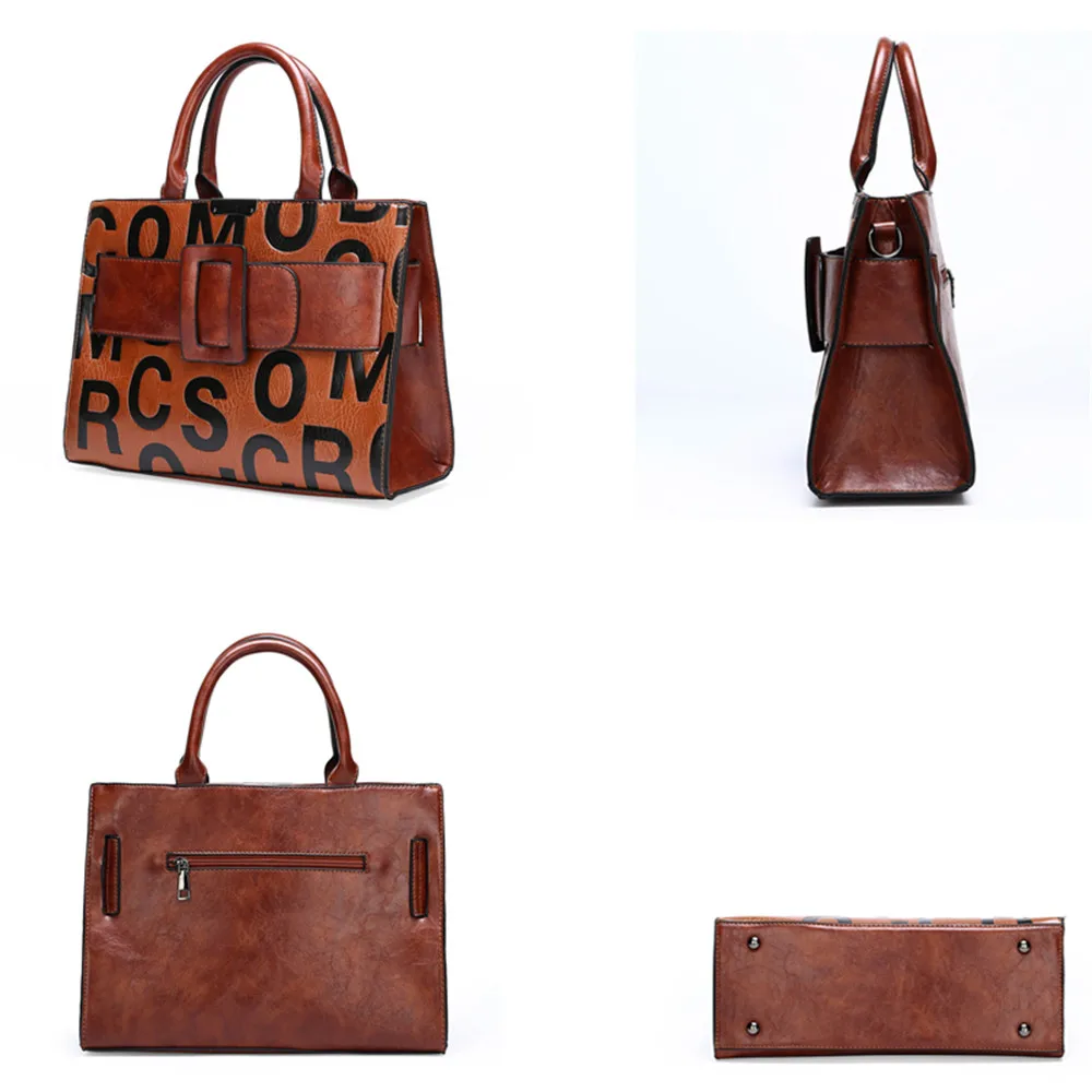 3 комплекта винтажных женских кожаных сумок с надписью, большие сумки с пряжкой на ремне, дизайнерская Высококачественная сумка через плечо для женщин, сумка-тоут