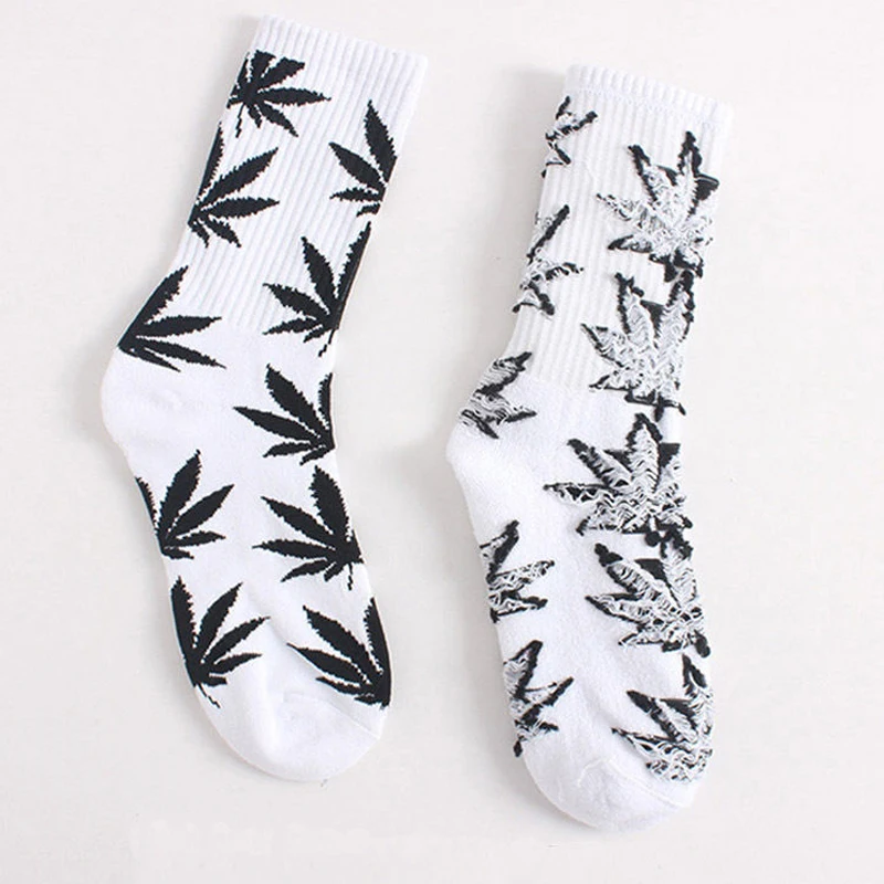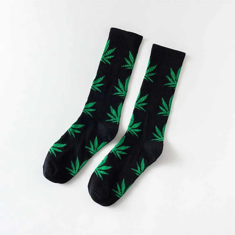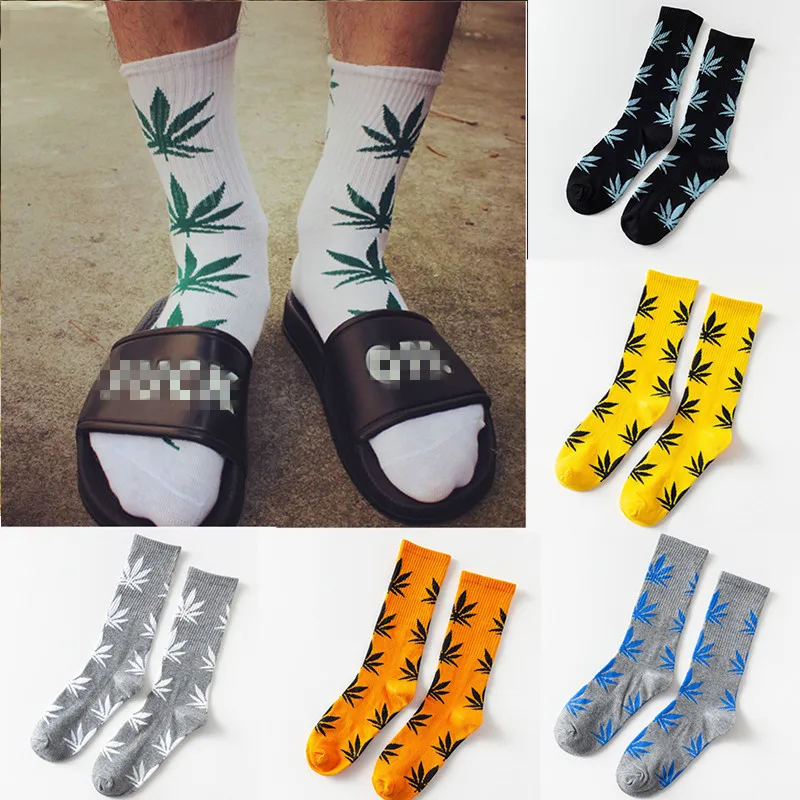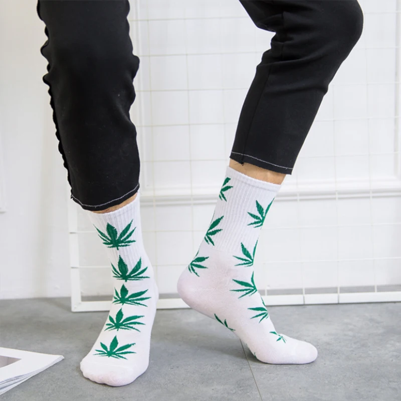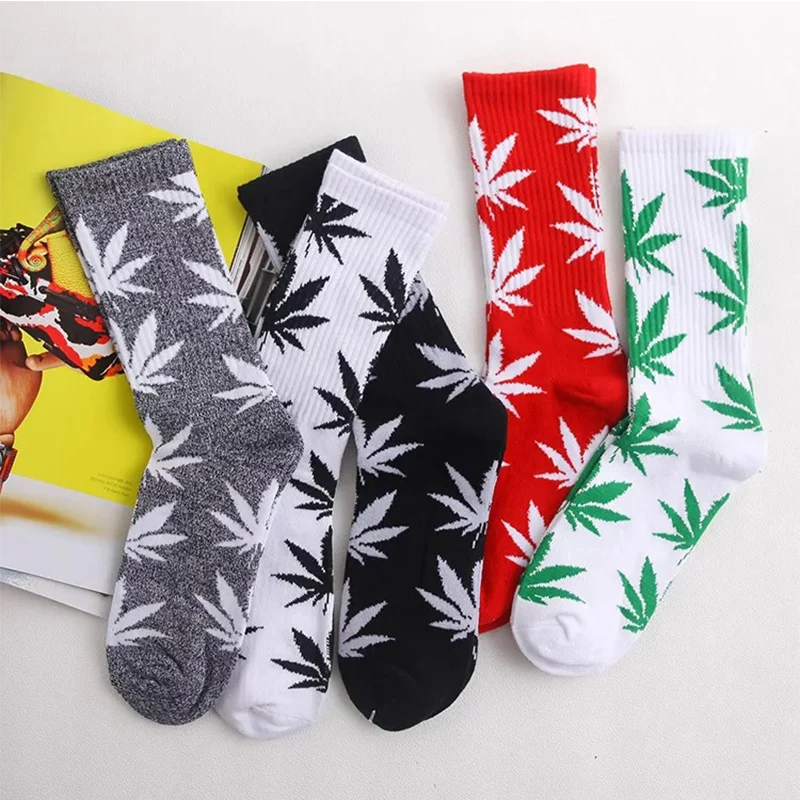 Носки женскиемужские длинные до щиколотки, хлопковые до колен, с носок кленовый лист листьями конопли, для скейтборда, принта листьев, в стиле хип-хоп, весна-лето