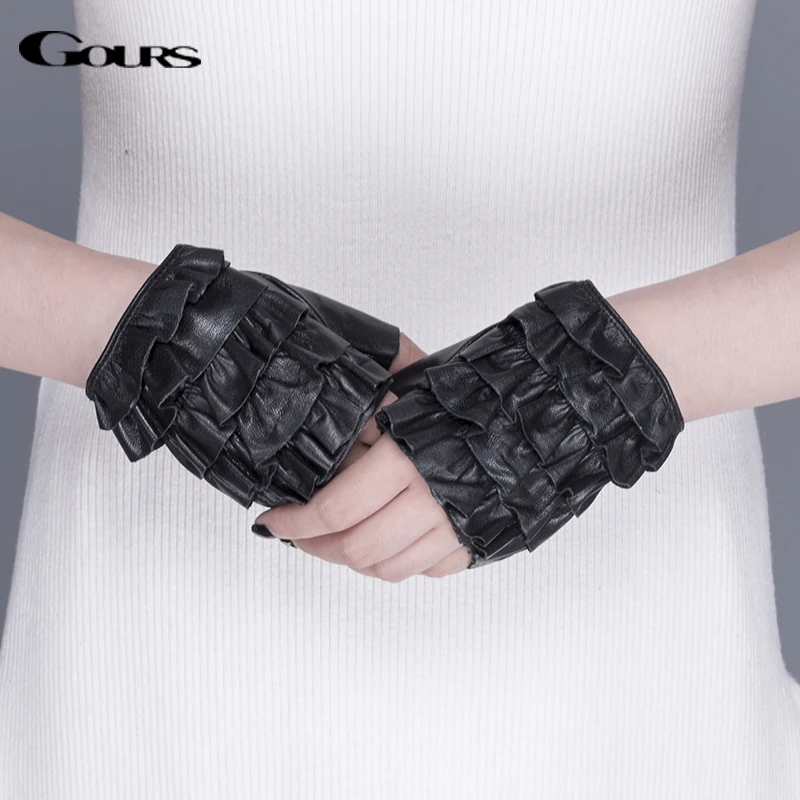 Женские перчатки без пальцев Gours, черные перчатки из натуральной ...