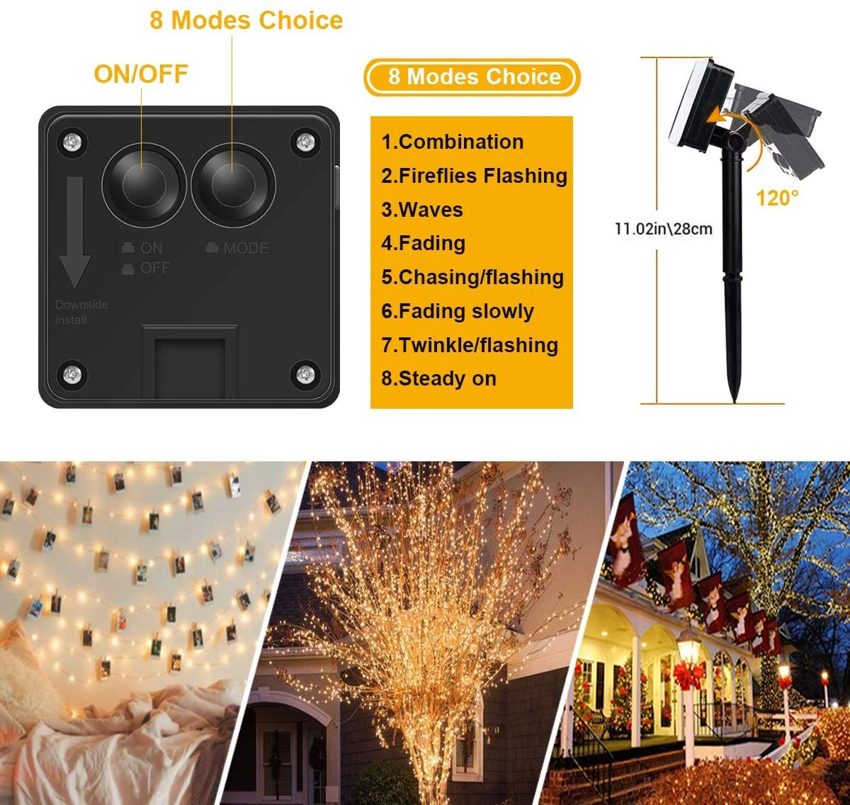 Гибкая Гирлянда DIY: гирлянда на солнечной батарее изготовлена из гибкой медной проволоки, которая легко создает необходимую форму и может освещать стабильный угол обзора 360 градусов во всех направлениях. Светодиодный светильник s производит теплый белый и мягкий светильник s, который приносит фестиваль в различные области, такие как коробки-светильник, коридоры, сады, дворы, террасы, балконы и т. Д.