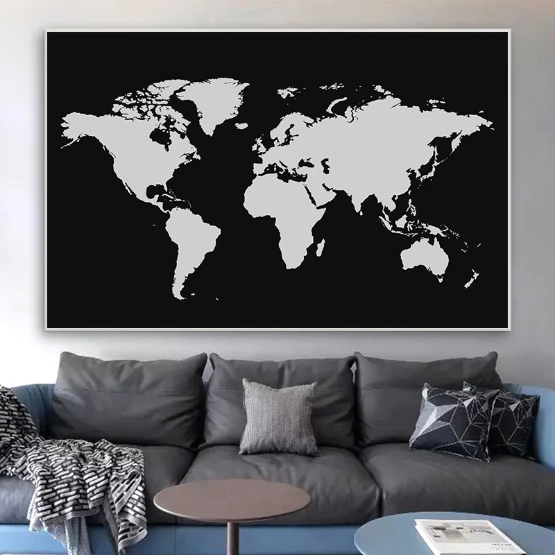 Абстрактная черная Золотая карта мира, холст, живопись плакат-карта и принты, Современная Настенная картина для гостиной, офиса, Декор, фреска