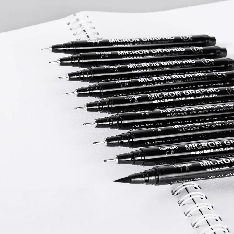 12 шт.компл. водостойкая устойчивая к выцветанию микрон PenTip тонкая подкладка черный скетч водный маркер ручка для манги канцелярские принадлежности