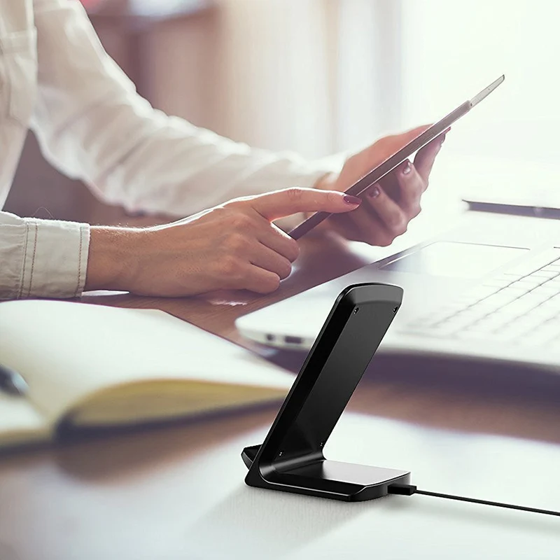 Безопасная Усовершенствованная защита-уникальная технология безопасности обеспечивает защиту от перегрузки по току, перегрева, перенапряжения, перегрузки и короткого замыкания; Нескользящий Силиконовый нижний край и приподнятое резиновое Крепление обеспечивают стабильность телефона и планшета. Эргономичный дизайн-умный светодиодный свет становится синим или зеленым, чтобы указать, заряжается ли он, держится или находится в плохом состоянии; Компактный интегрированный дизайн стойки, предлагает современный и Премиальный вид, И обеспечивает легкую и удобную зарядку. Два угла обзора: 2 катушки предлагают вам более широкое высокоэффективное положение зарядки, чтобы зарядить вертикально или горизонтально для идеального просмотра во время просмотра видео, игр, приема звонков и т. д. Полностью Освободите руки от удержания телефона. Внимание: Вход: 9V-1.67A 5V-2A или, беспроводное зарядное устройство требует QC 2,0/3,0 адаптер переменного тока или 10 Вт/12 Вт адаптер переменного тока. Если ваш телефон поддерживает технологию quick charge 2,0/3,0, подключите Беспроводное зарядное устройство к зарядному устройству QC 2,0/3,0. Максимальный выход может быть 10 Вт. Если ваш телефон не поддерживает технологию быстрого зарядного устройства 2,0/3,0, кронштейн беспроводного зарядного устройства обеспечивает стандартный выход (макс. 5 Вт). Телефоны, такие как iPhone 5 5C 5S 6 6S 7 Plus, не поддерживают беспроводную зарядку, требуется беспроводной зарядный приемник для беспроводной зарядки. Цвет: черный Материал: АБС-пластик Размер изделия: 10*7,6*12,4 см Вес: 212 г Посылка содержание: 1 * Беспроводное зарядное устройство 1 * Инструкция на английском языке Только содержимое вышеуказанной посылка, другие товары не включены. Примечание: светильник для фотосъемки и различные дисплеи могут немного отличаться от реального. Допускается погрешность в измерениях +/- 1-3 см.