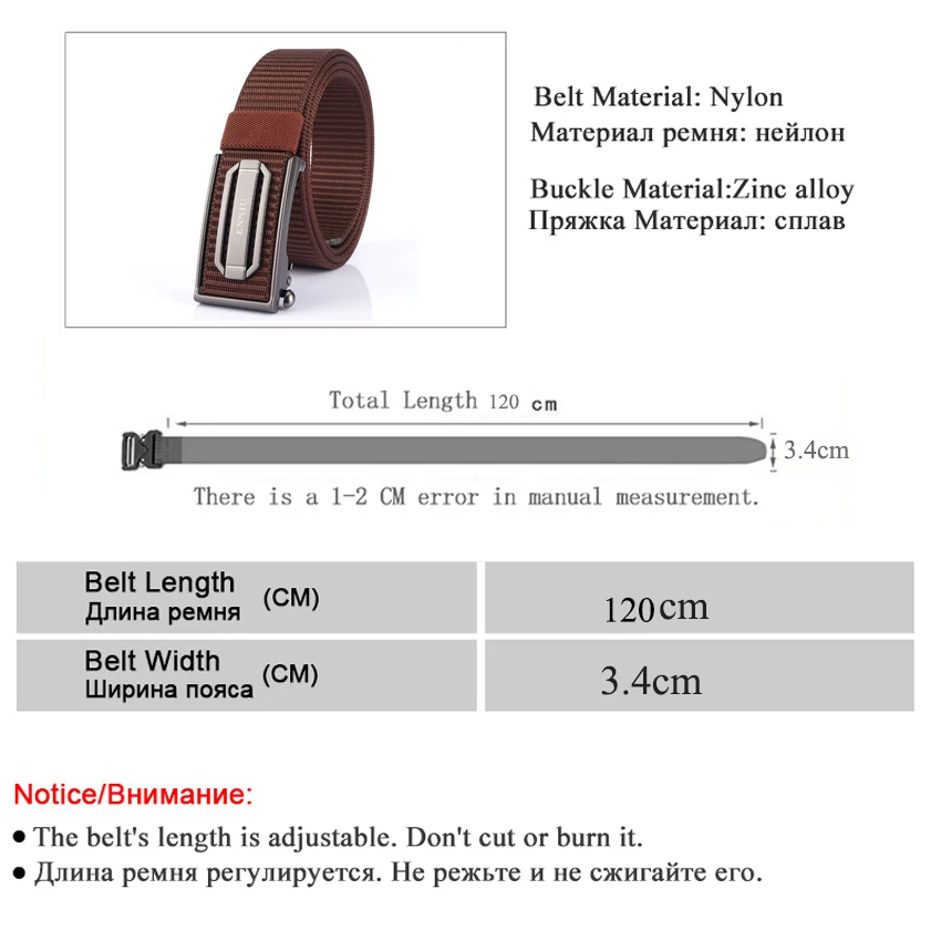 Ремень мужской нейлоновый с автоматической металлической пряжкой, м...
