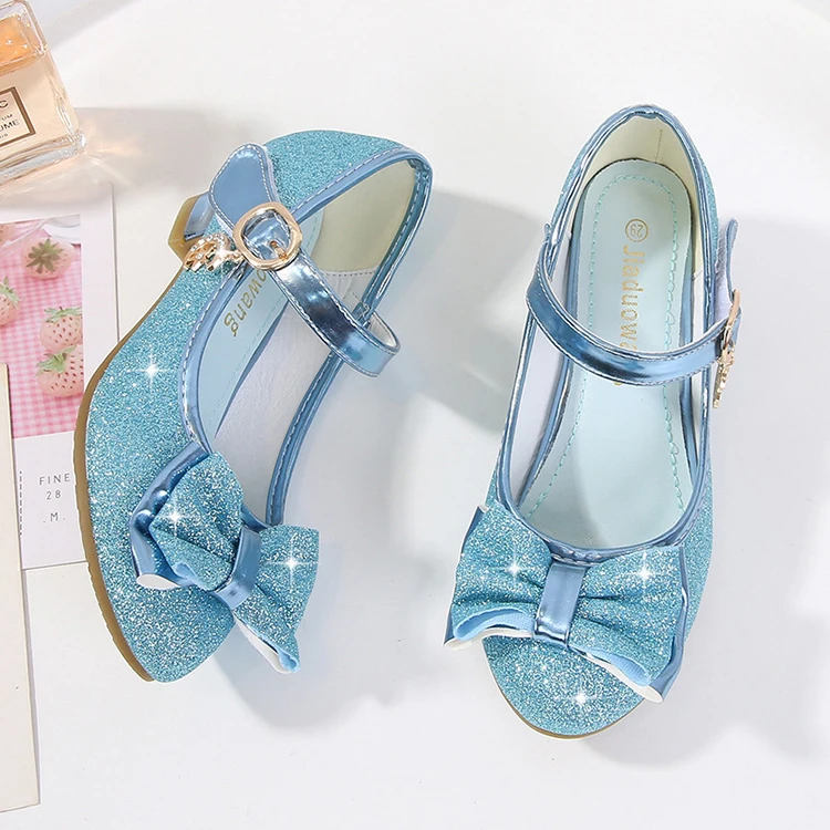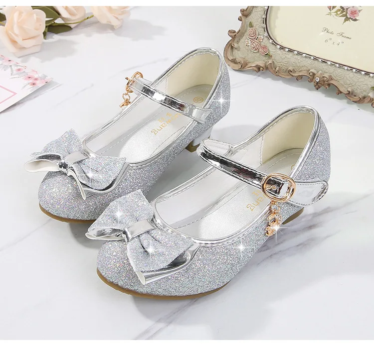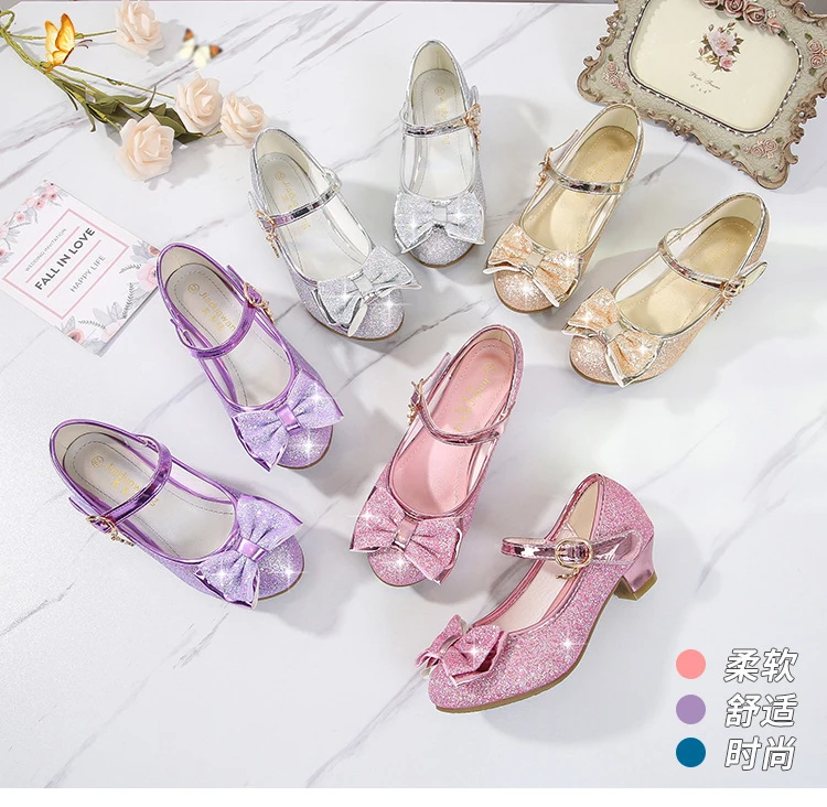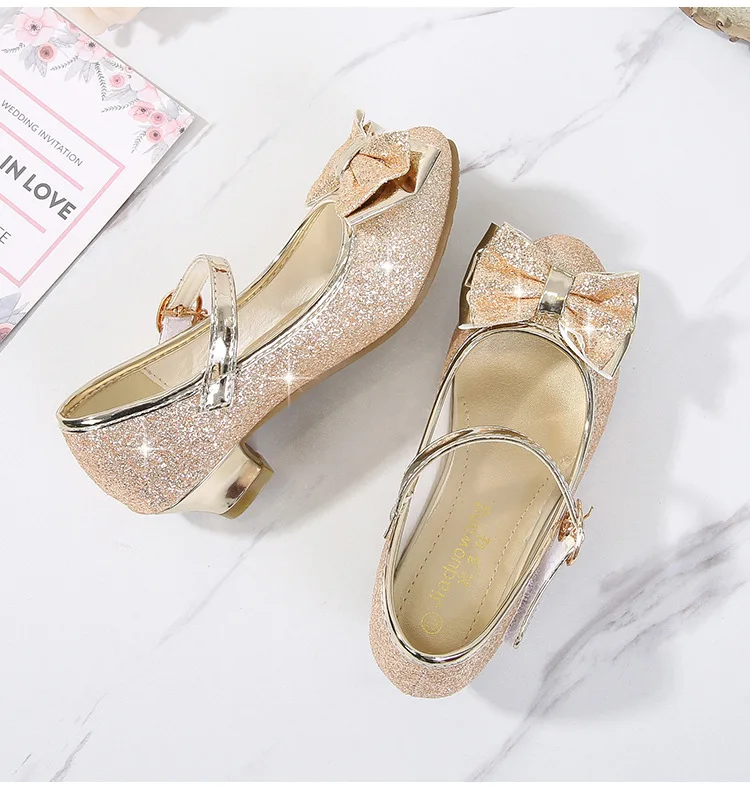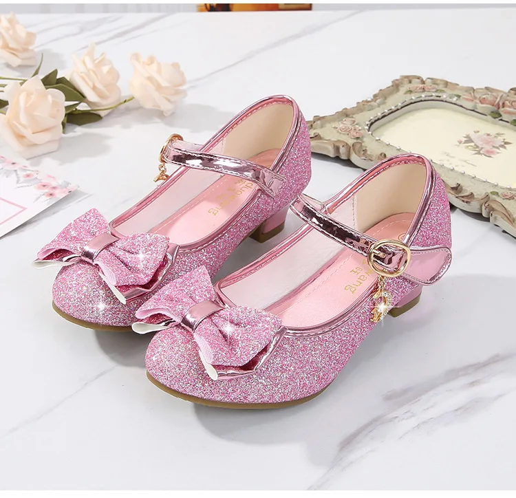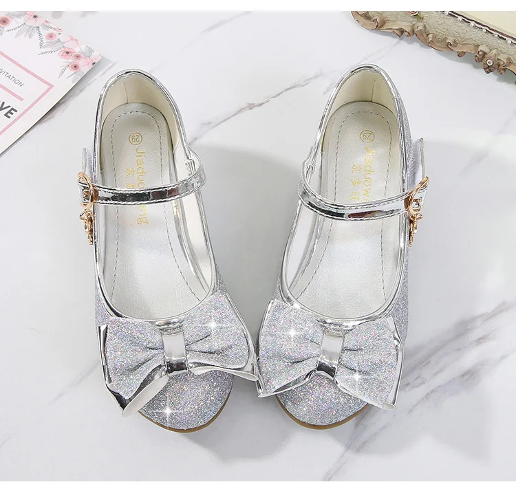 Обувь принцессы для девочек; Туфли на высоком каблуке с бантом-бабочкой и блестящими кристаллами; Детские кожаные тонкие туфли; Подарок на день рождения