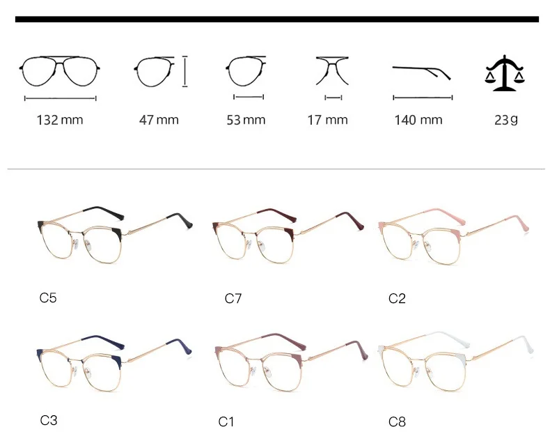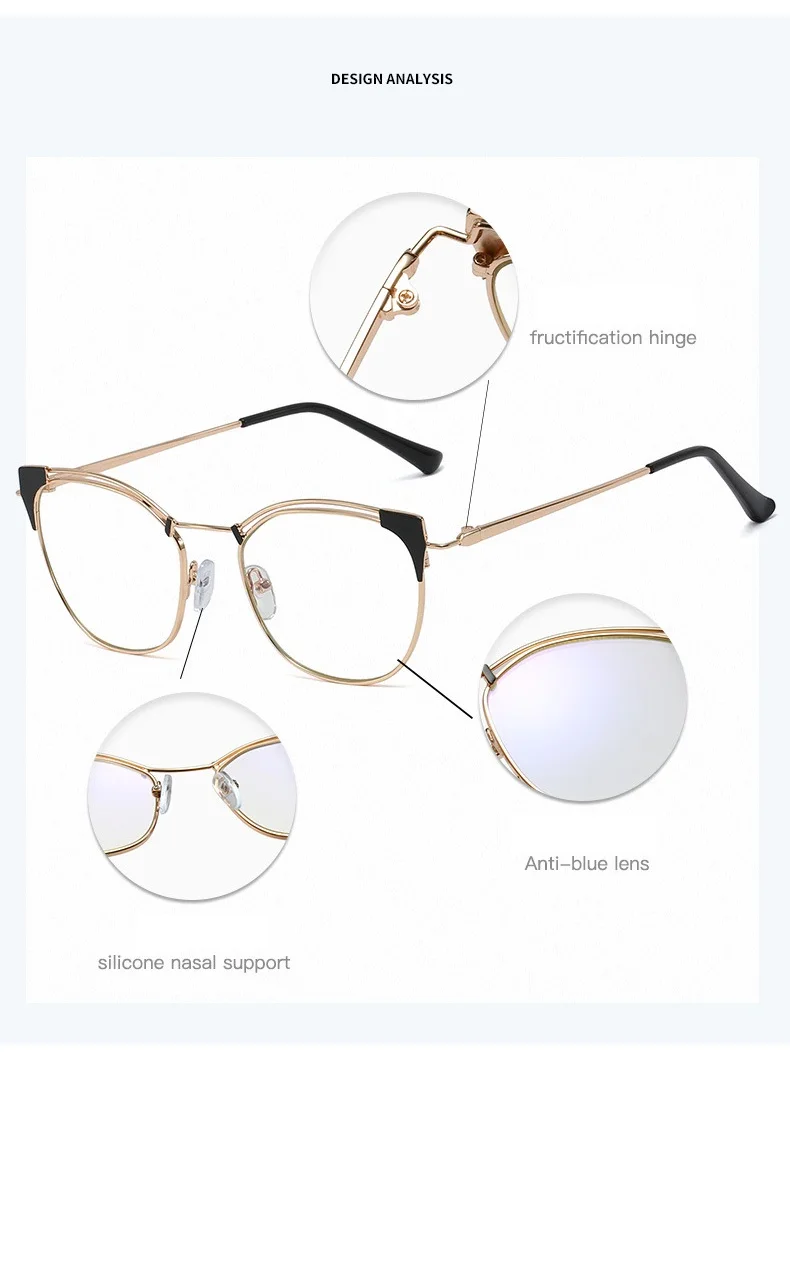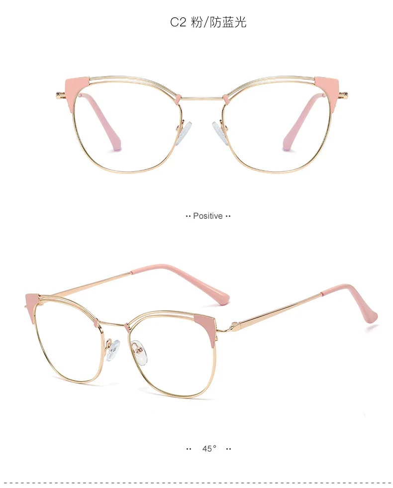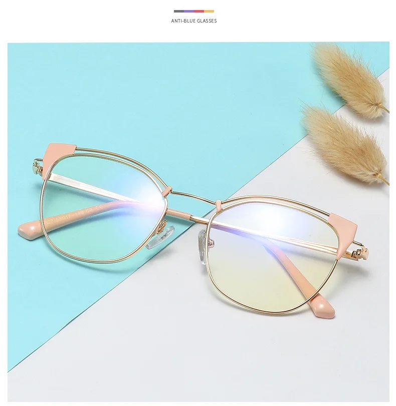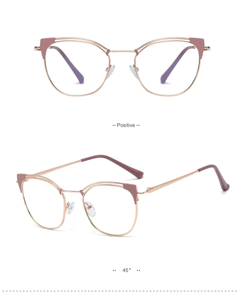 Очки LONSY женские в ретро-стиле, металлические оптические аксессуары кошачий глаз для близорукости, с прозрачными линзами с защитой от синего света, в компьютерной оправе