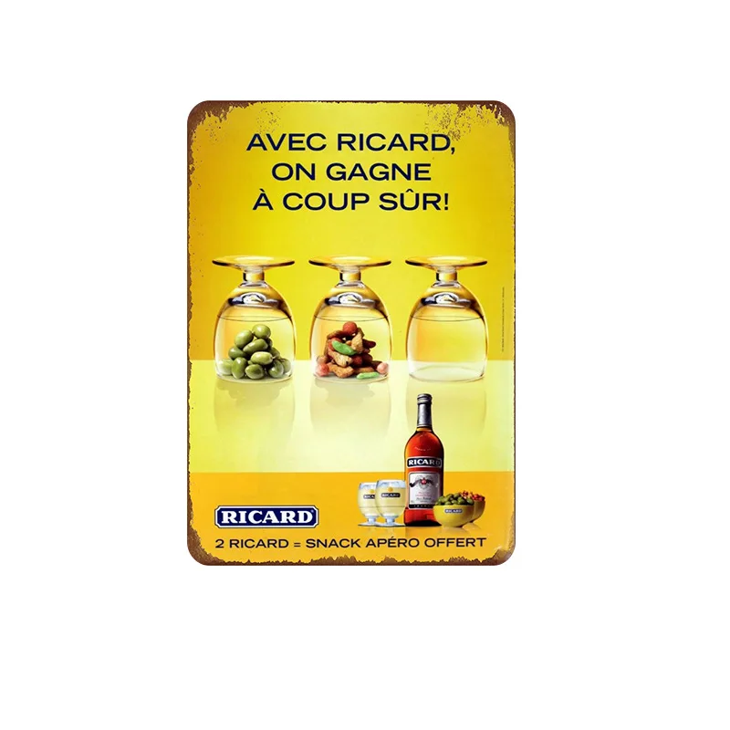 Модный рекламный бренд рикардового пива, винный металлический знак, жестяной знак для вкусных напитков, для дома, паба, бара, декоративная железная живопись