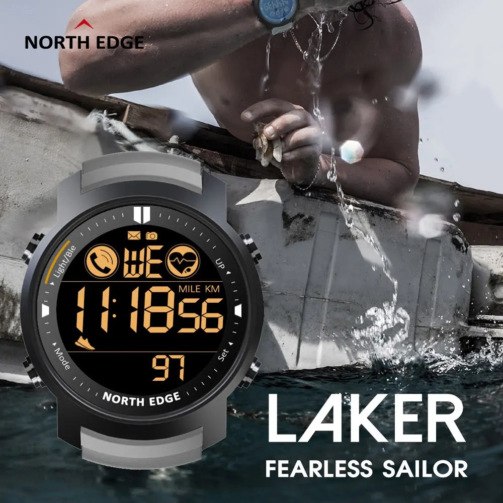 Смарт-часы NORTH EDGE Laker мужские для плавания и бега, спортивные Смарт-часы с шагомером, секундомером для AndroidIOS, водонепроницаемость 50 м