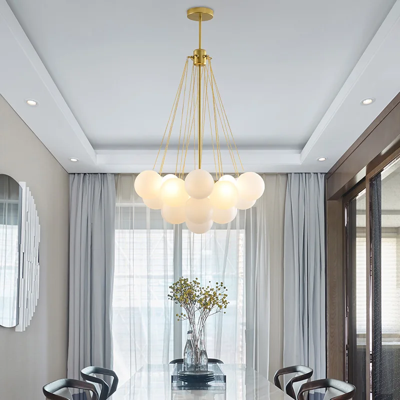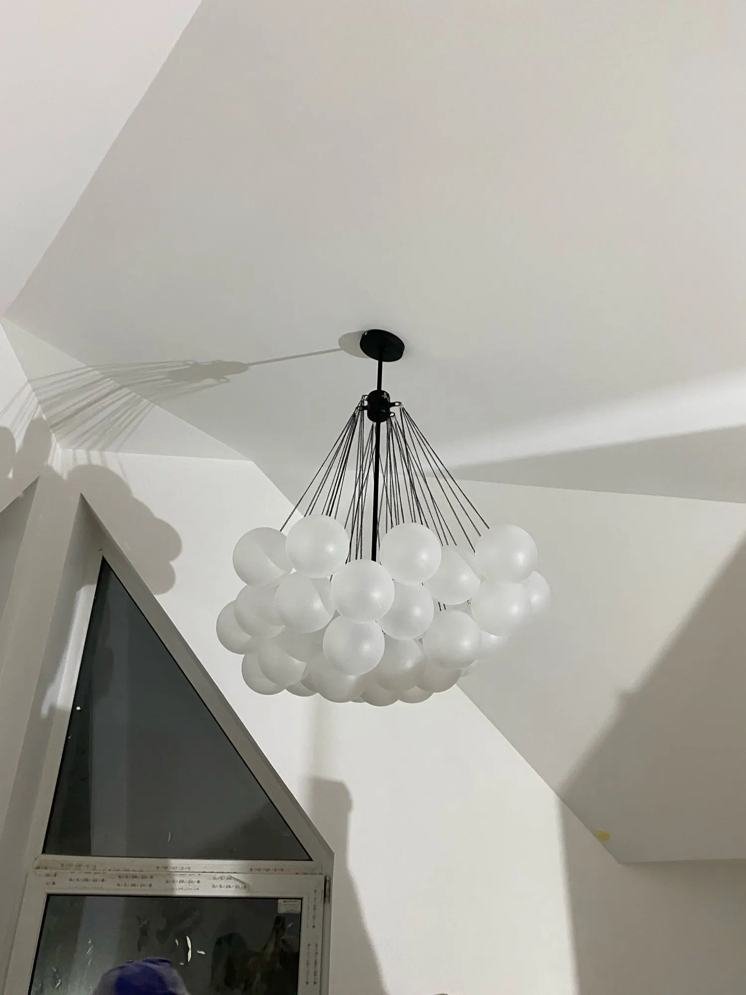Скандинавские матовые стеклянные люстры с шариками, современные светодиодные светильники для детской комнаты, столовая, гостиная, золотистые, черные
