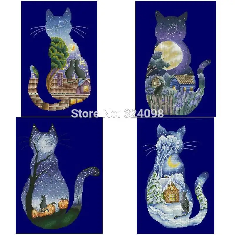 Узоры с изображением кошки в лунном свете, вышивка крестиком 11CT 14CT, сделай сам, оптовая продажа, китайские наборы для вышивки крестиком, наборы для вышивки